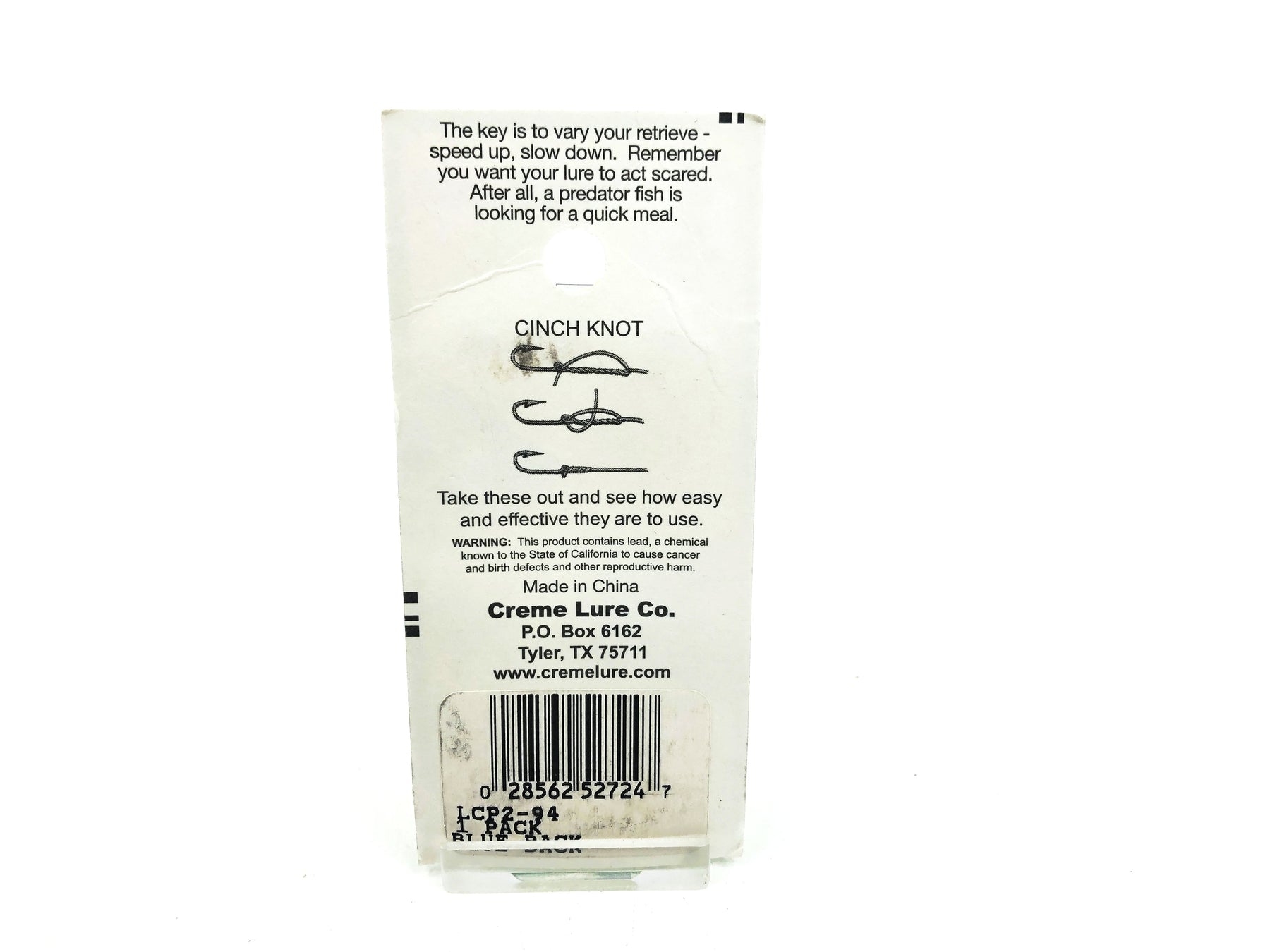 Creme Hard Bait Lipless Crankbait, Blue Back Color on Card. Unique lure here. Lure is about 1 1/2" long. Bait is new on card and card is in good condition. See photos.  Classic lure here.  One you don't see all that often. Fish or collect.