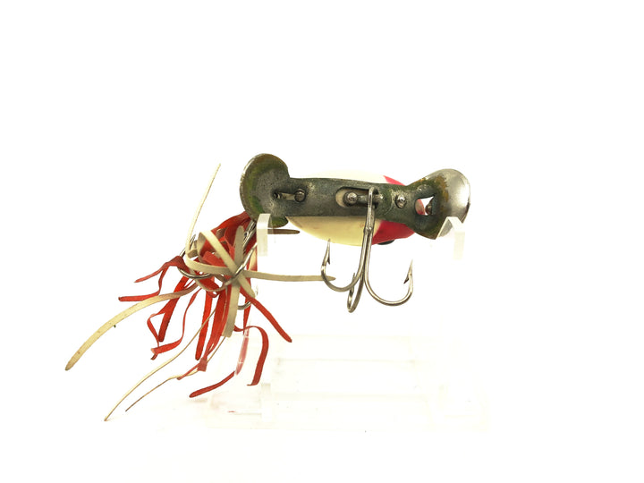 Arbogast Hula Dancer, Red Head/White Color. Classic Arbogast lure here at about 2" long total. Used with some wear but overall in good condition, see photos. Rare to find these vintage lures with its skirt intact. Add to your collection or tackle box.
