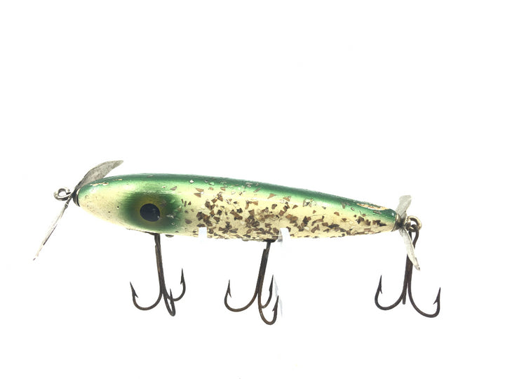 Wooden Torpedo Bait White with Sparkles. At about 4 1/4" long with some wear but nothing major. Perfect for any fishermen or collector! See photos.