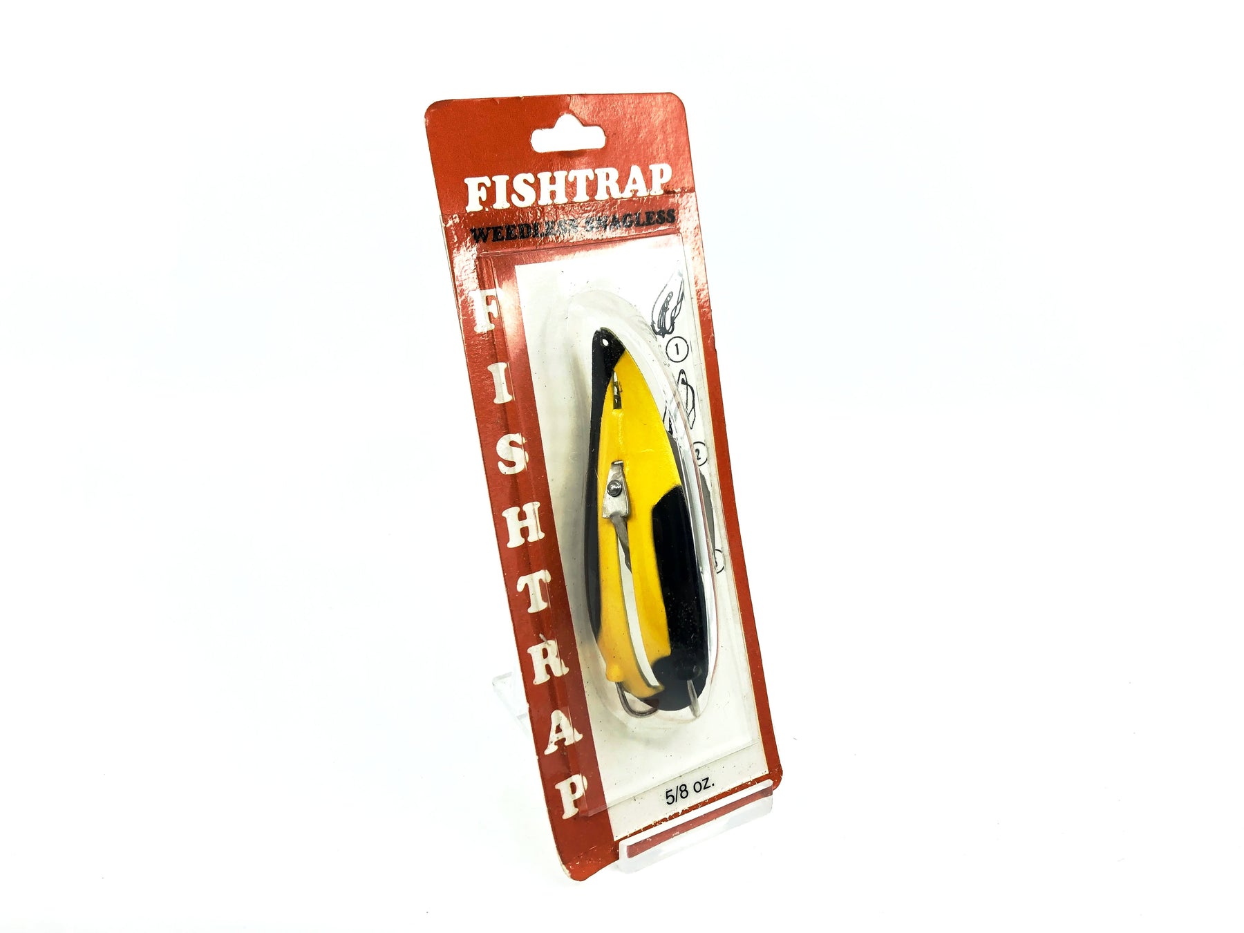 FishTrap Weedless Bait, Black/Yellow Color on Card. Great bait here with the moving hook attachment. About 3 1/8" long. Lure is new on card, card is in good condition with some minor wear, see photos. Fish or collect this great lure.