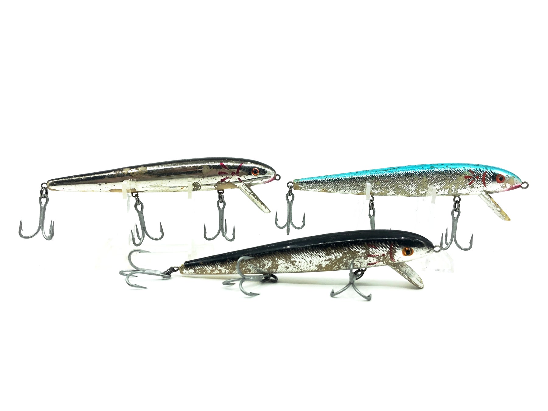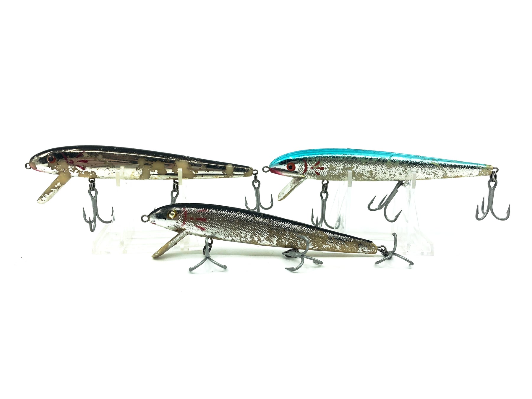 Cordell Red Fin Trio. This pack includes three used Cotton Cordell Red Fins. All three have a good amount of wear and marks, however the hooks are still in good condition, see photos. These baits are all 5 1/4" long. Take these guys back out fishing.