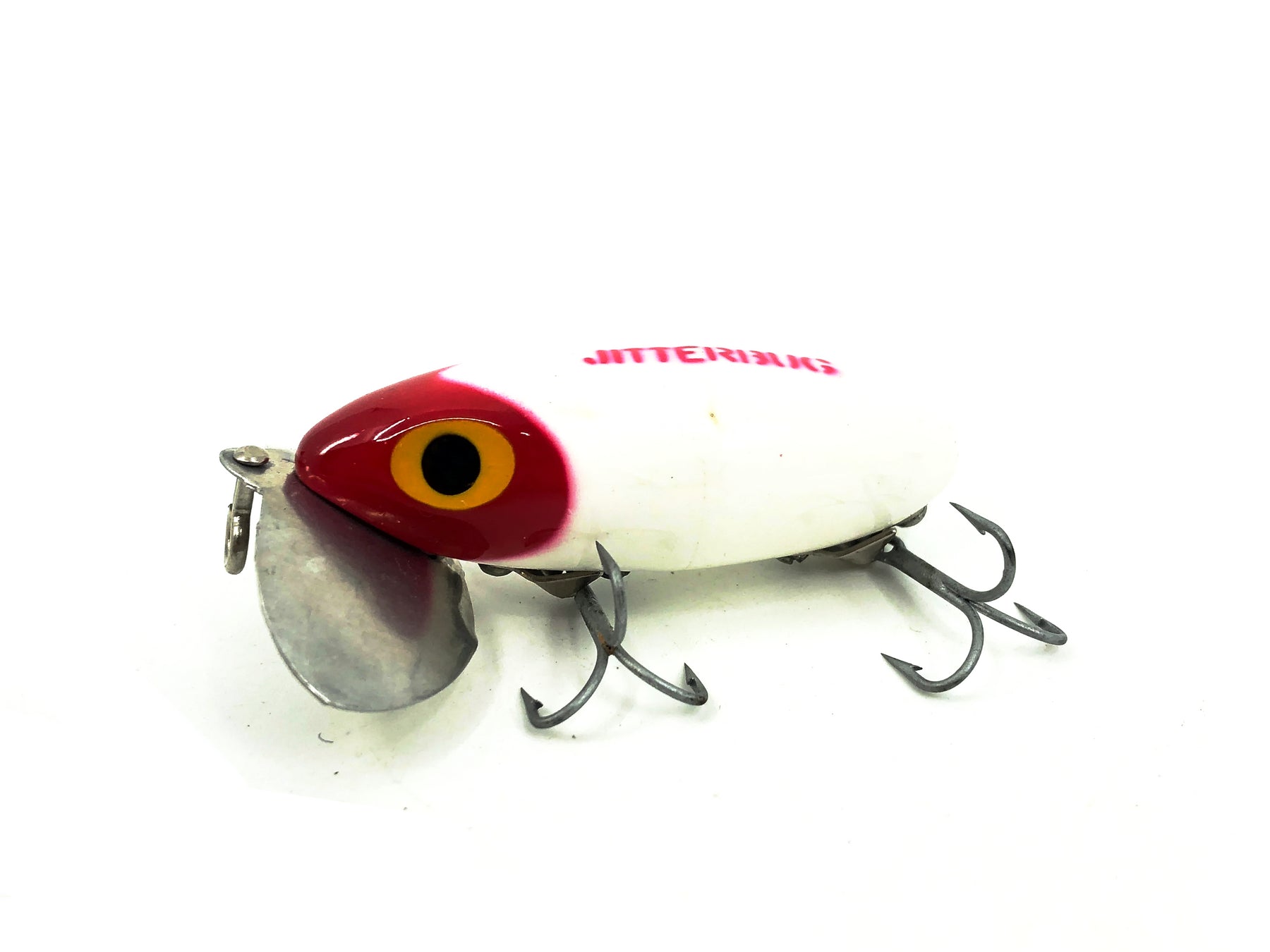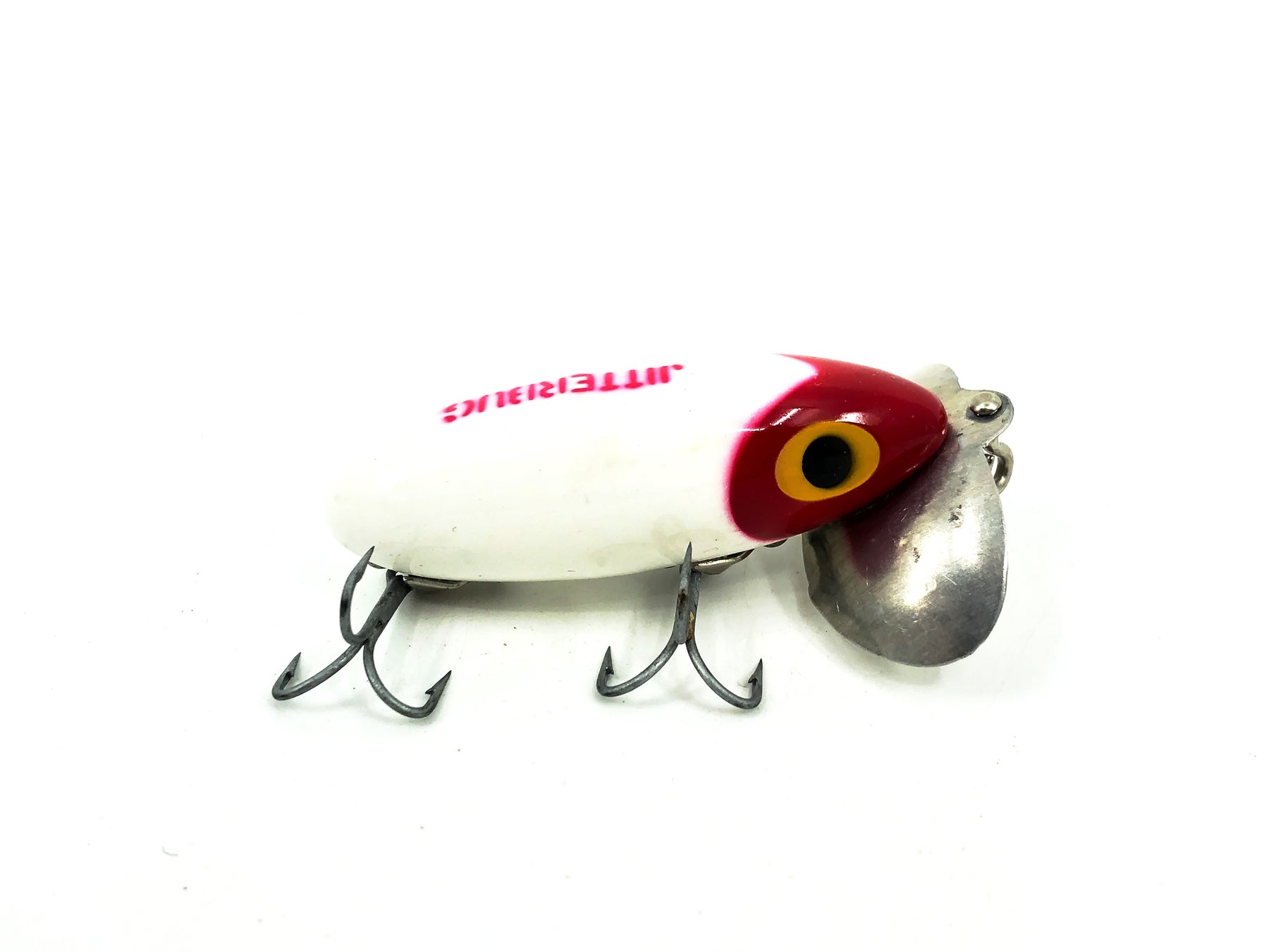Arbogast Jitterbug 3/8oz, Red Head/White Body Color. Body is about 2 1/4" long. Used with only some minor wear but overall still in good condition. Fish or collect, see photos.
