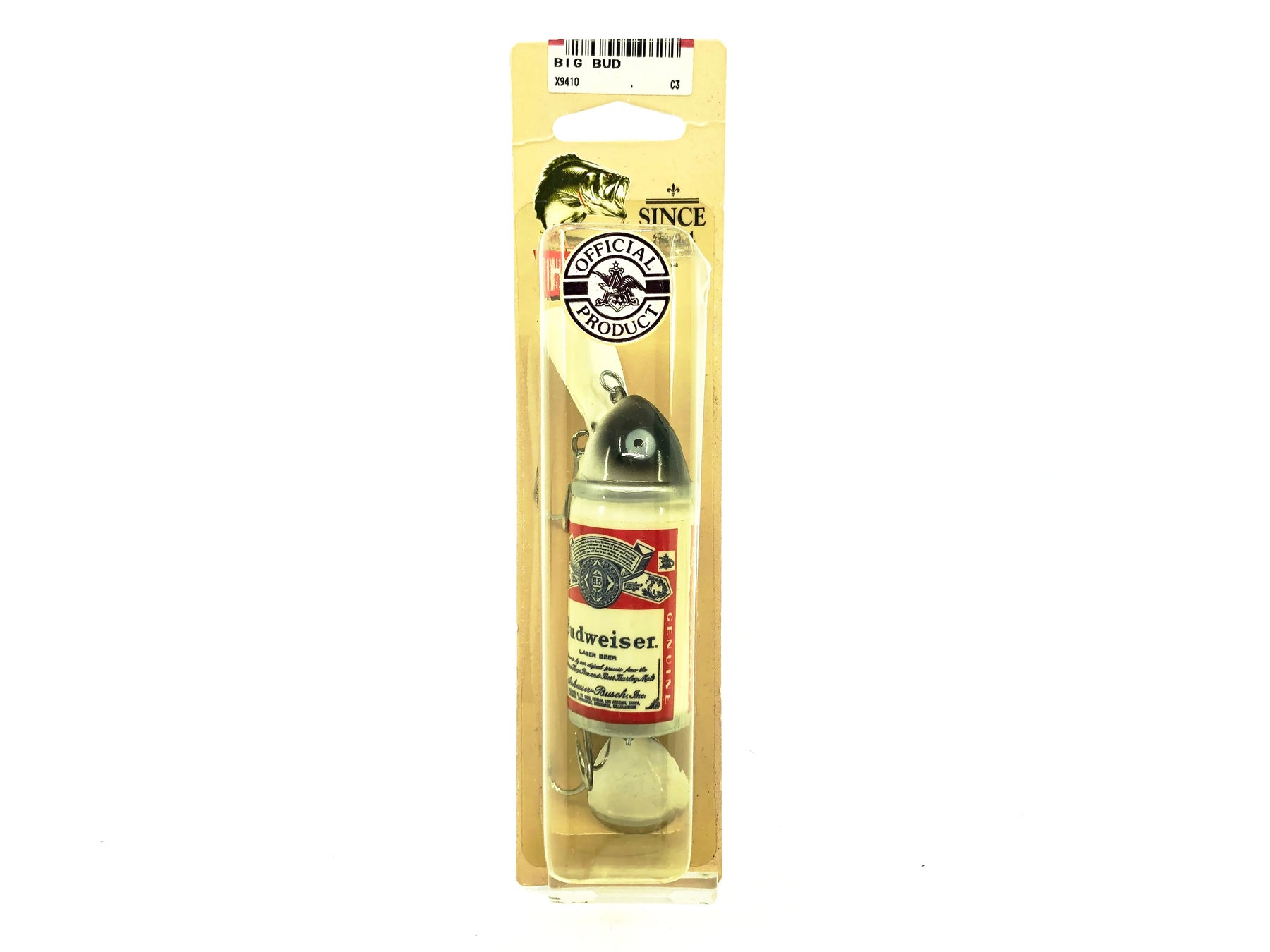 Heddon Big Bud 9410 Budweiser Color New on Card. Tougher lure to find here from around 1984. Card correctly marked. Card has some minor wear but overall good condition. Lure is new on card. See photos. Tough to find combo. Add to your collection today. One of the most desirable Heddon lures out there.