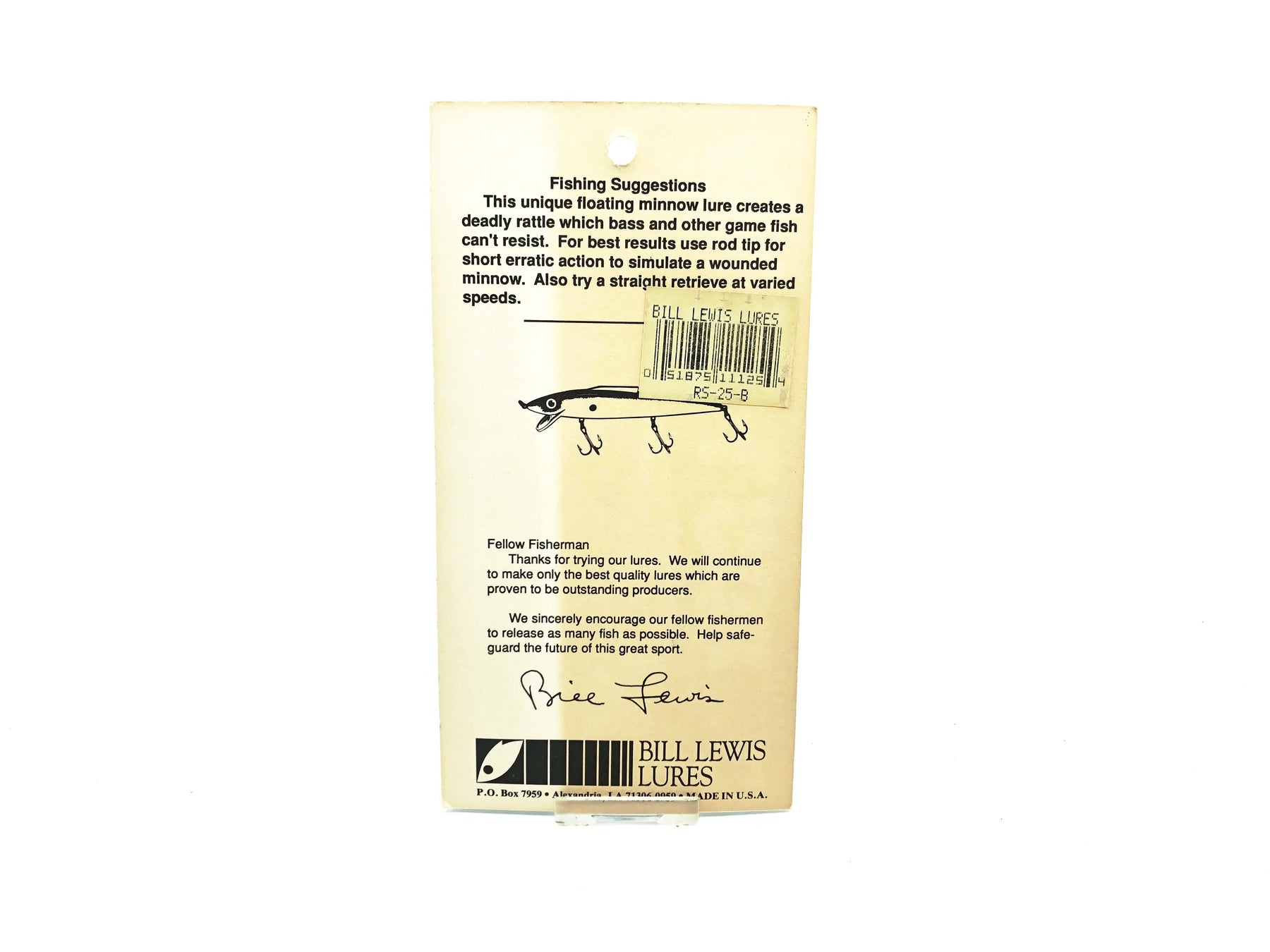 Bill Lewis Rat-L-Stik, #25B Chrome/Blue Back Color on Card. Great discontinued bait here. This Bill Lewis bait is about 4 3/8" long. Lure is new on card and card is in great condition. See photos.