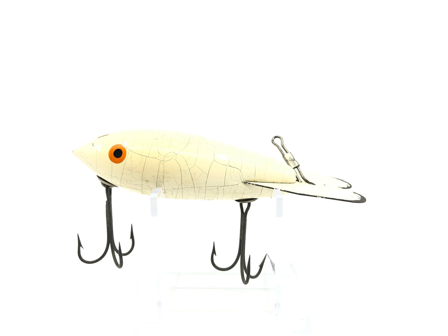 Bomber Wooden 600 Series 601 White Color. At about 4" long this lure is in great condition aside from a few minor blemishes. One of the all time greatest lures in an iconic color. Fish or collect. See photos.