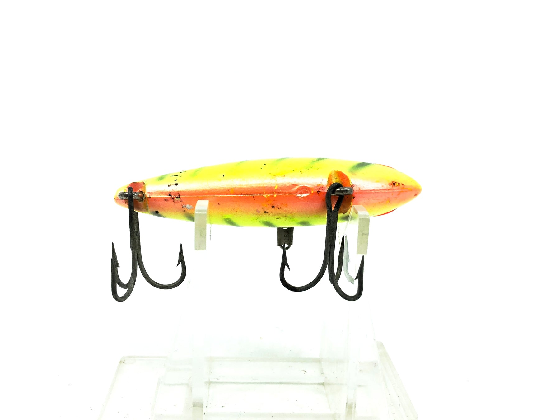Bomber Pinfish 3P, DFY Dull Fluorescent Yellow/Orange Belly Color. About 2 1/2" long. Lure is used with some wear and marks but in overall good condition, see photos. Harder to find lure. Fish or collect.