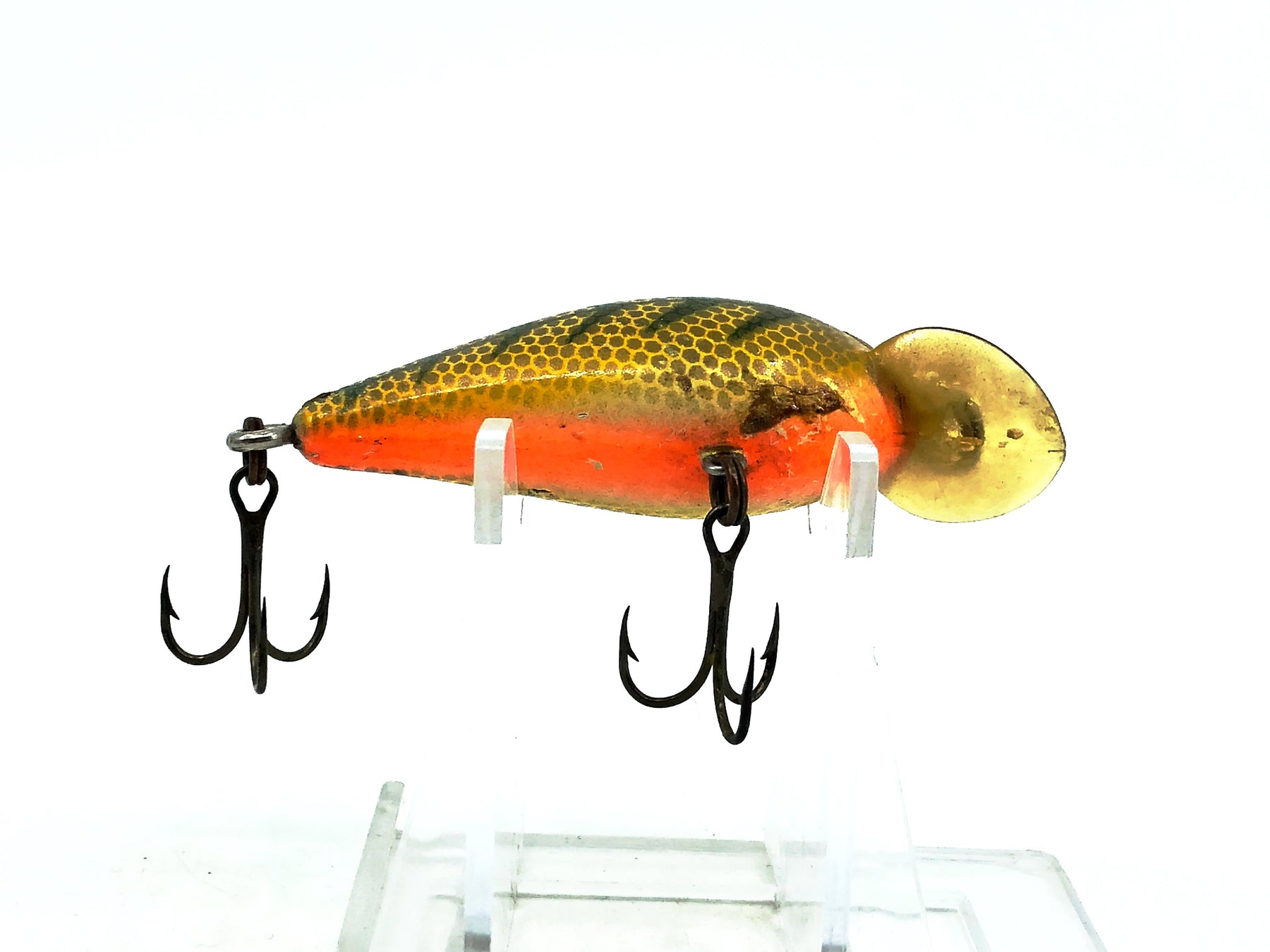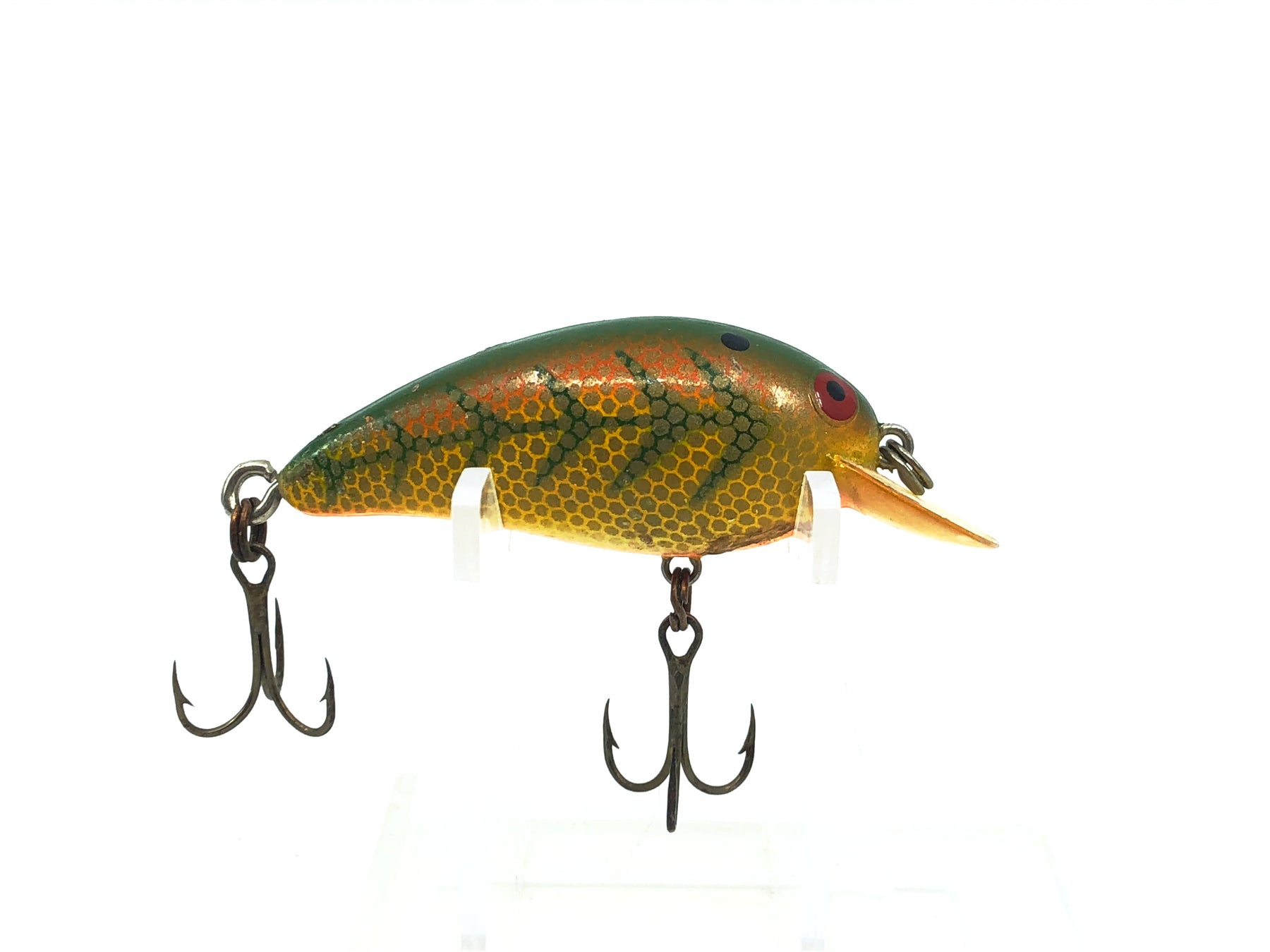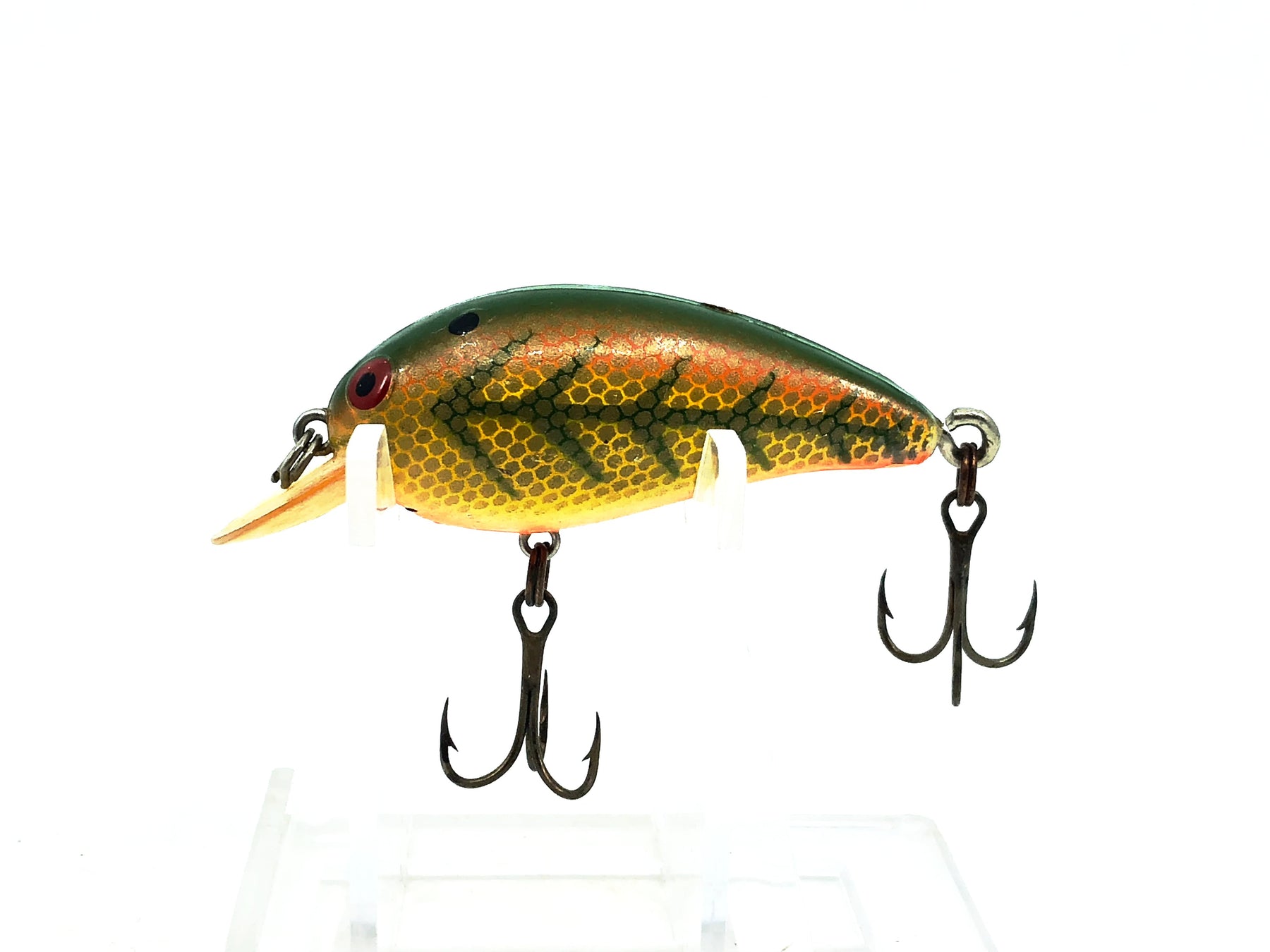 Bomber Model A 2A, #07 Yellow Perch Color. Classic vintage Bomber color. About 2 1/8" long body not including lip. Lure is used but in overall good condition with some wear and minor marks. See photos. Tougher color to find. Fish or collect.