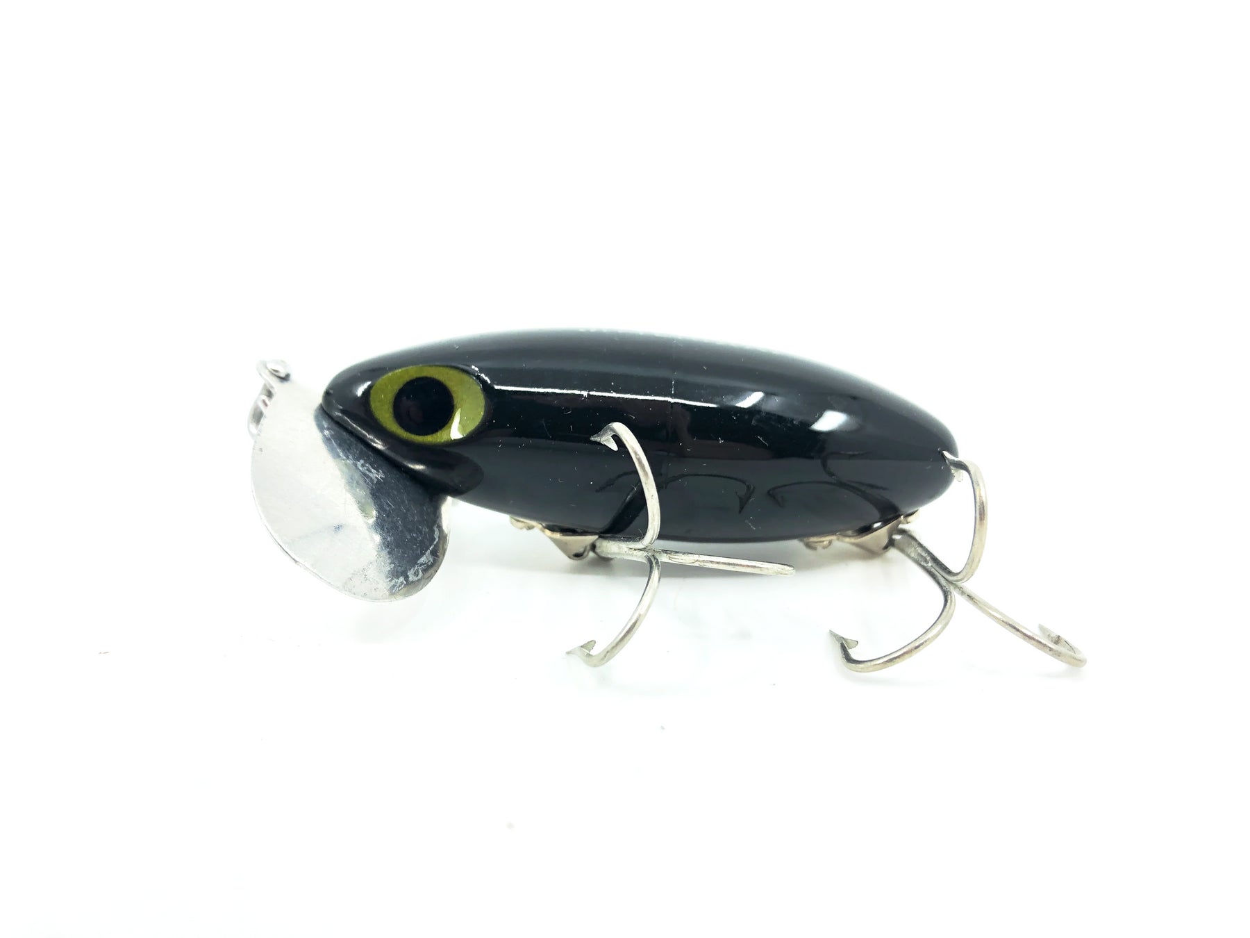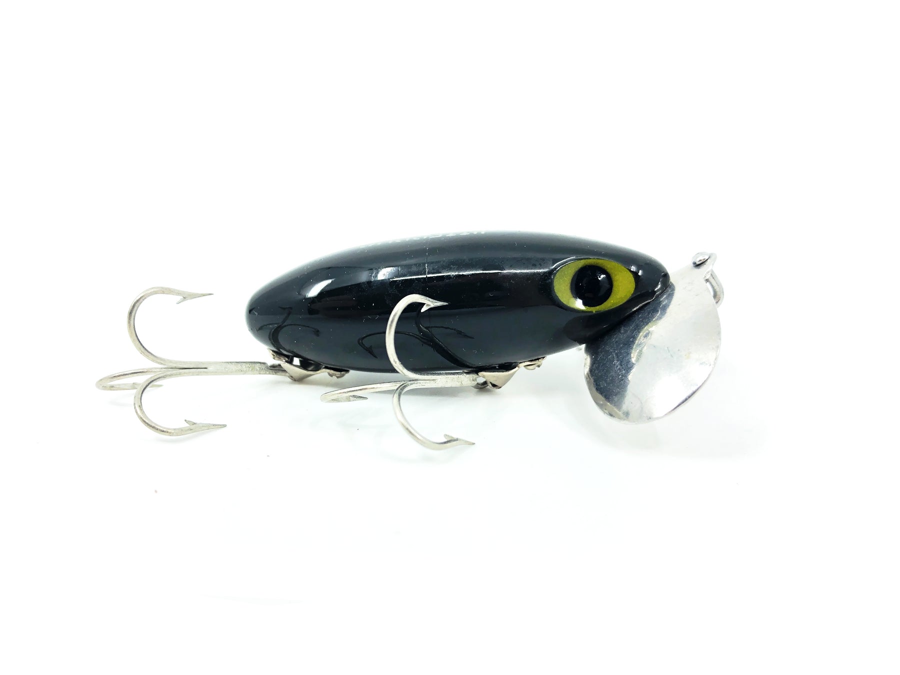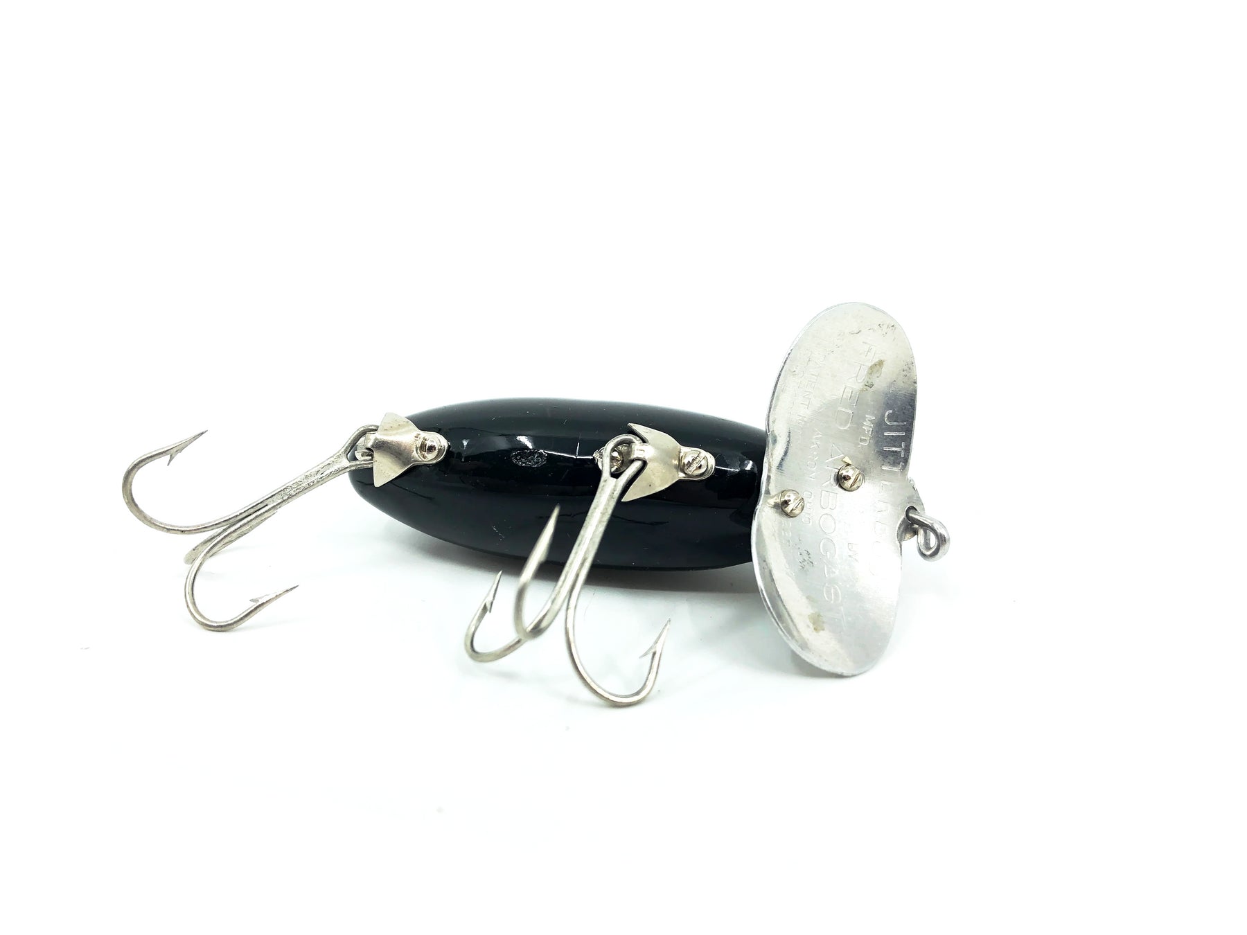 Arbogast Jitterbug 5/8oz, Black Color. Newer Pradco variant of this color, but still hard to find. Body is about 2 5/8" long. Used with some wear and marks but overall great condition. Fish or collect this iconic lure, see photos.