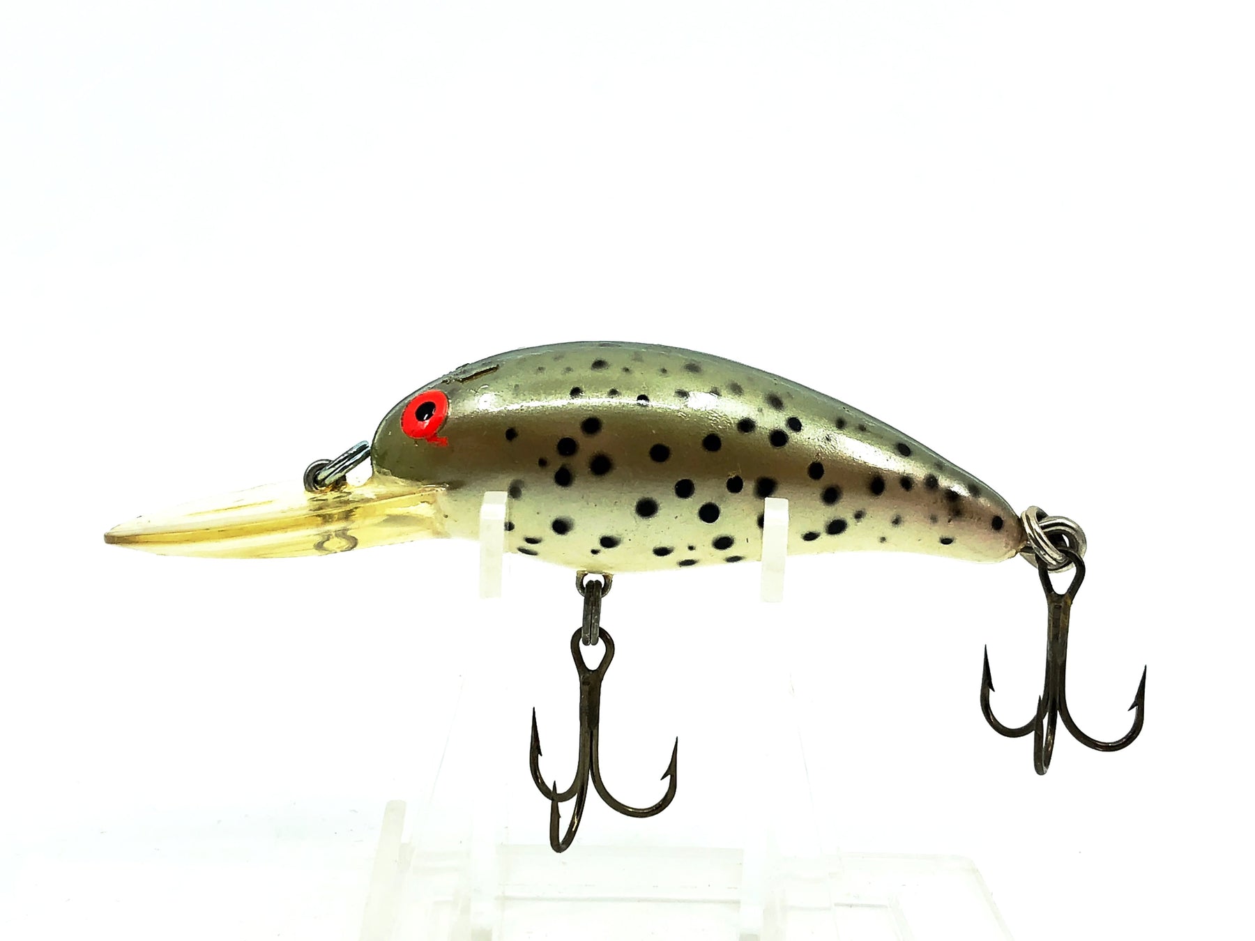 Bomber Model A 7A, RT Rainbow Trout Color, Screwtail Model. This lure is about 2 5/8" long not including lip. Lure is used with some minor wear but in overall good condition. Fish or collect, see photos.