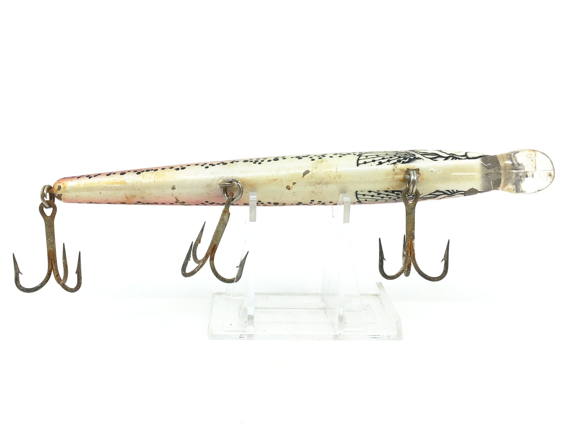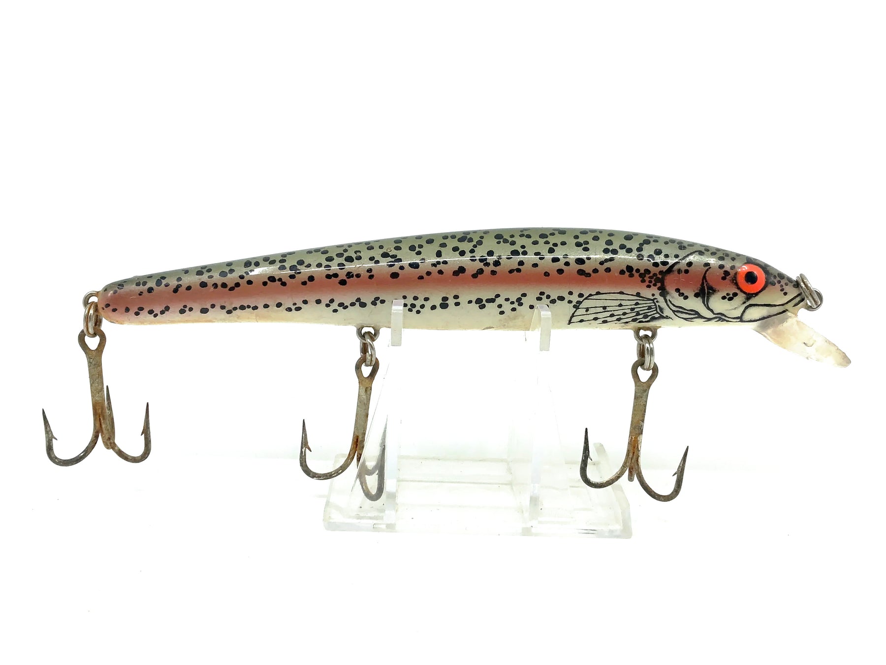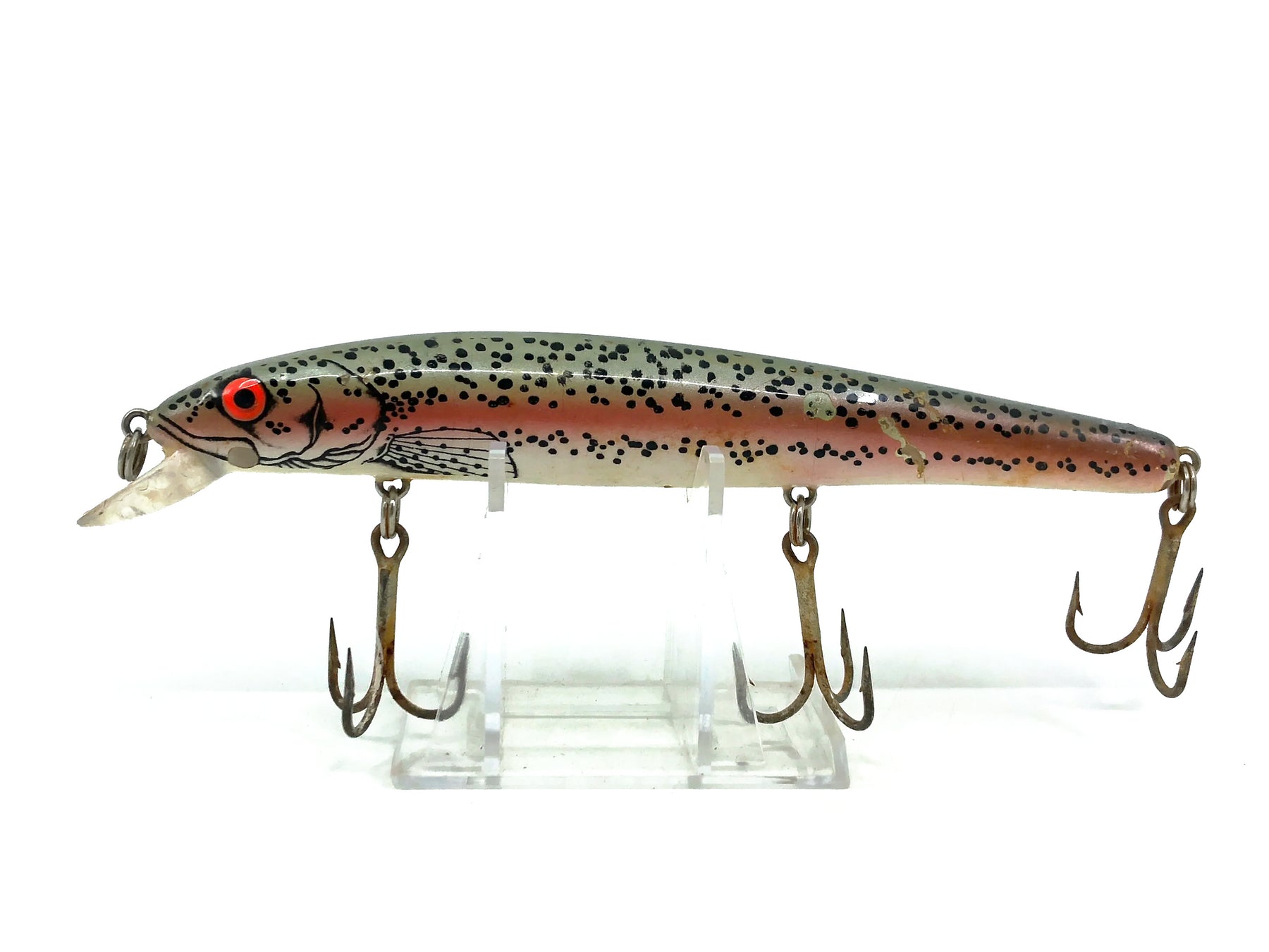Bomber Magnum Long a 16A, XRT Rainbow Trout Color. Great lure here from the late 80s-90s. This bait is about 6" long excluding the lip. Lure is used with some minor wear but in overall good condition. Fish or collect!