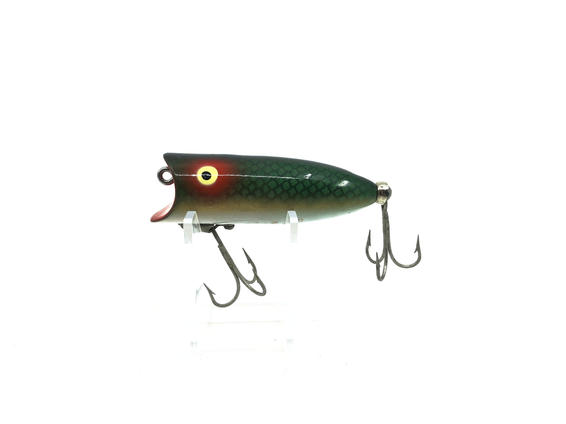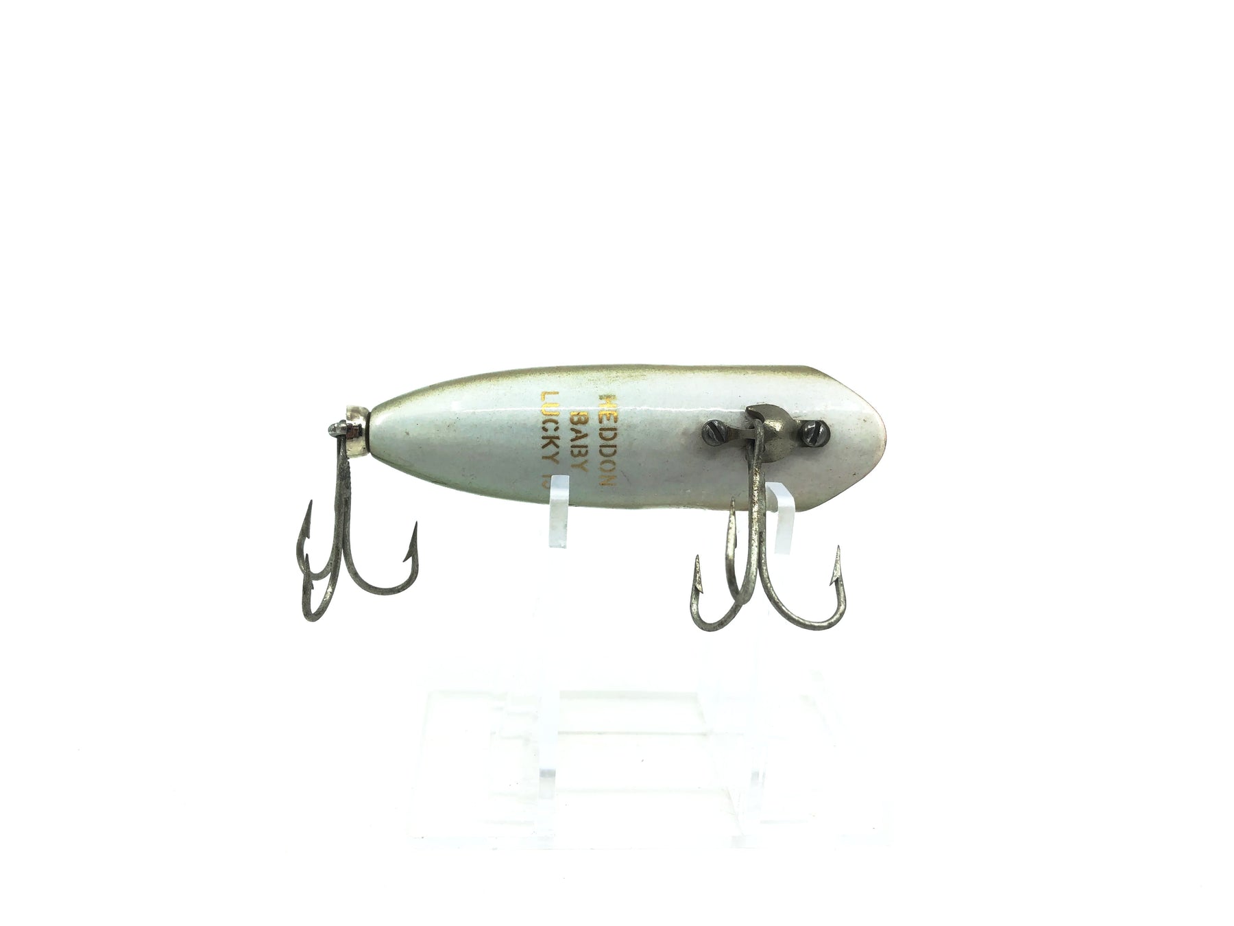 Heddon Baby Lucky 13 D Green Scale Color. The lure is used with some wear but in good condition. About 2 3/4" long. Classic Heddon lure to fish or collect. See photos. One of the most iconic colors on this bait.