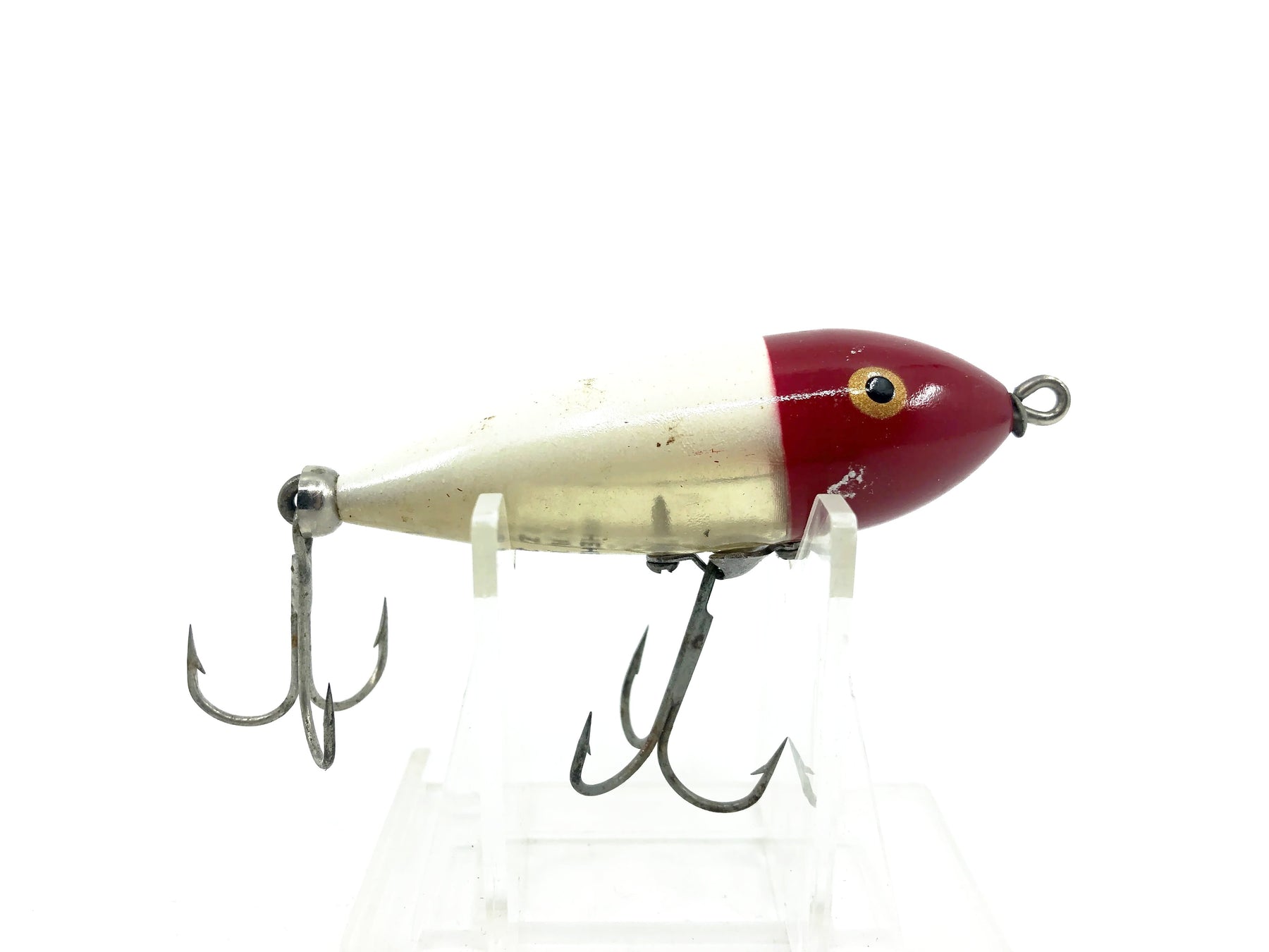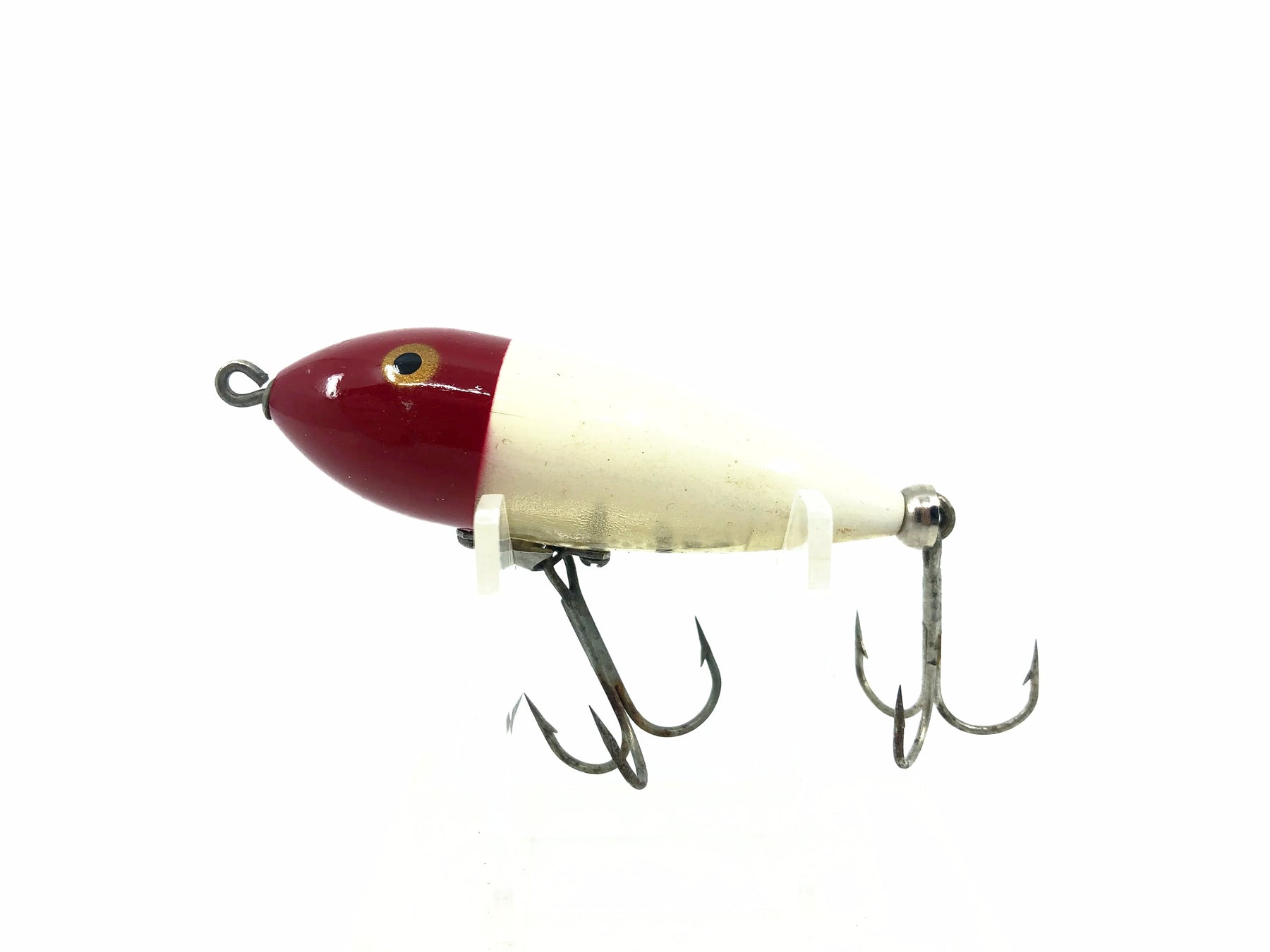 Heddon Baby Zara, RH Red Head/White Color. Great Heddon bait here. About 2 3/4" long. This lure is used but is in good condition with some minor wear. See photos.