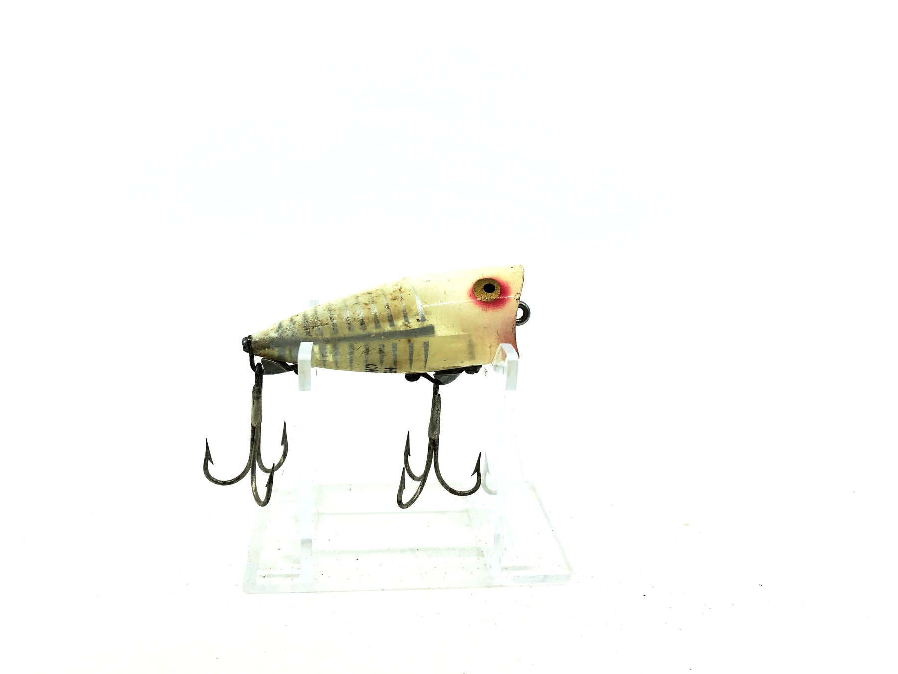 Heddon Chugger Spook Jr. 9520 XRW White Shore Minnow. Classic Heddon bait here. Lure is about 2 1/4" long. Used but in good condition with some wear, see photos. Tougher lure to find. Fish or collect.