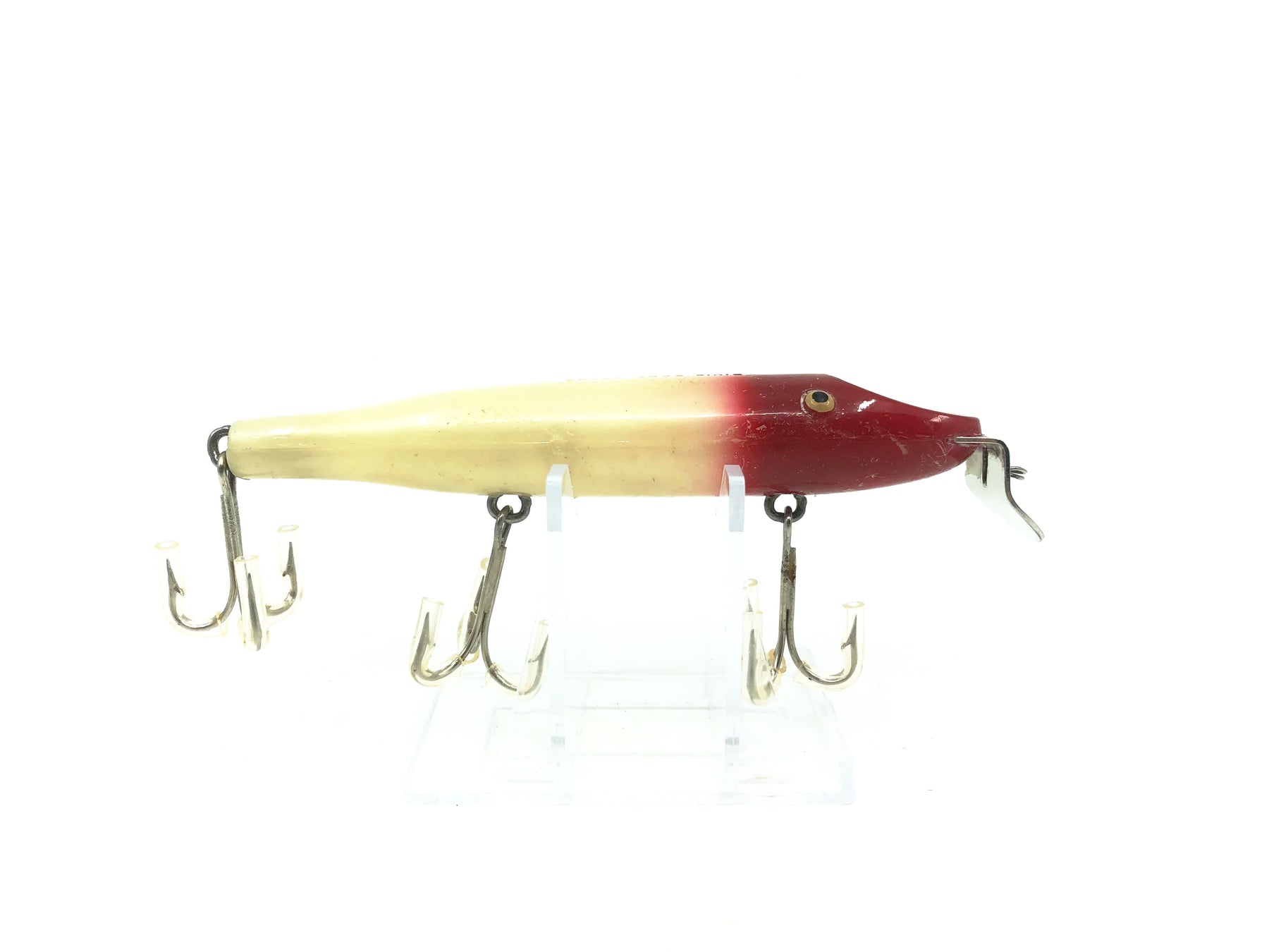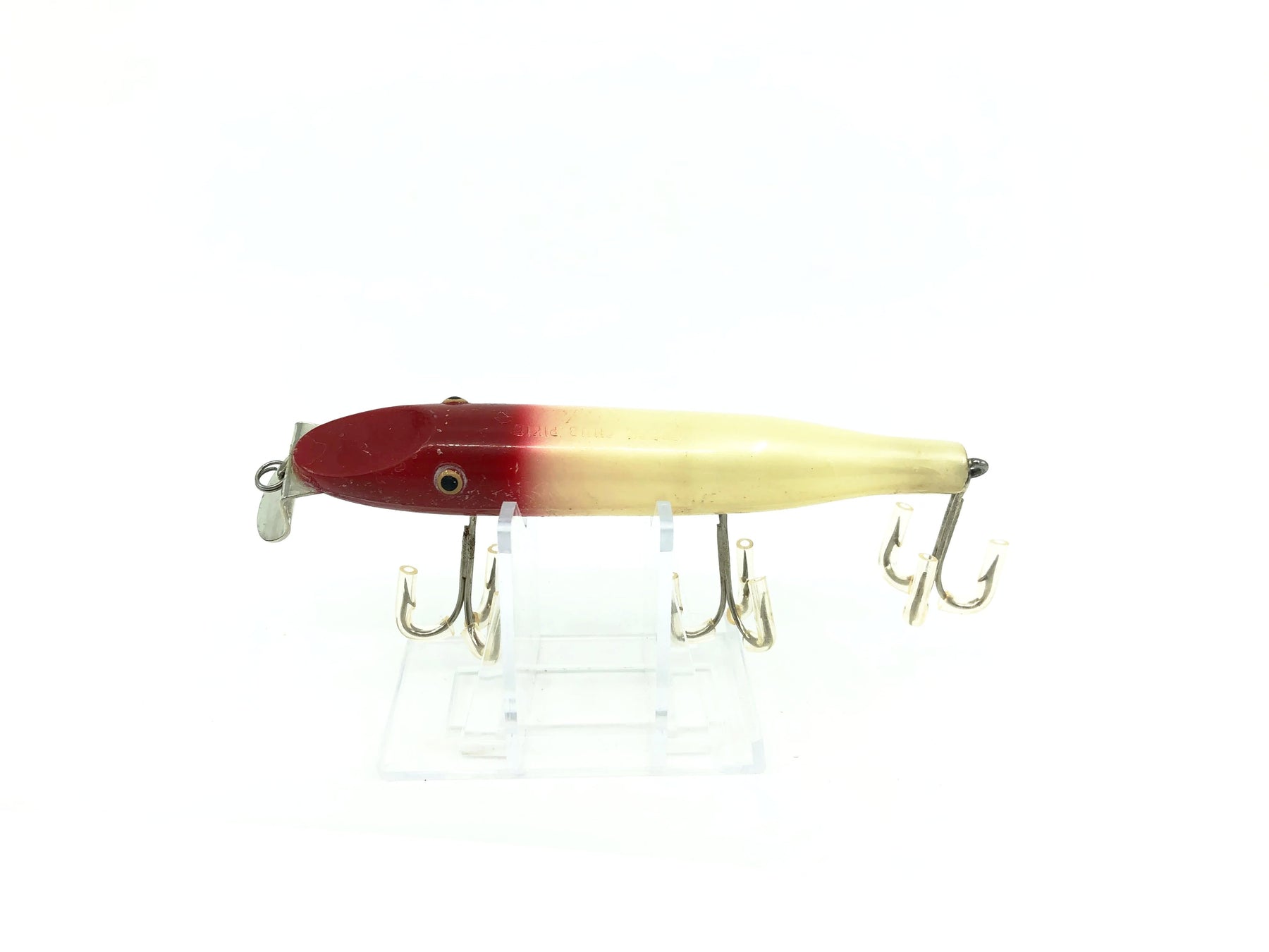 Creek Chub 700 Pikie, Red Head/White Body Color 702. This is the famous Creek Chub Pikie!  About 4 1/4" long not including the lip.  Used plastic Creek Chub with some wear and waxing but still overall in good condition.  See photos.  Fish or collect you can't go wrong with a vintage Creek Chub.  Plastic version.