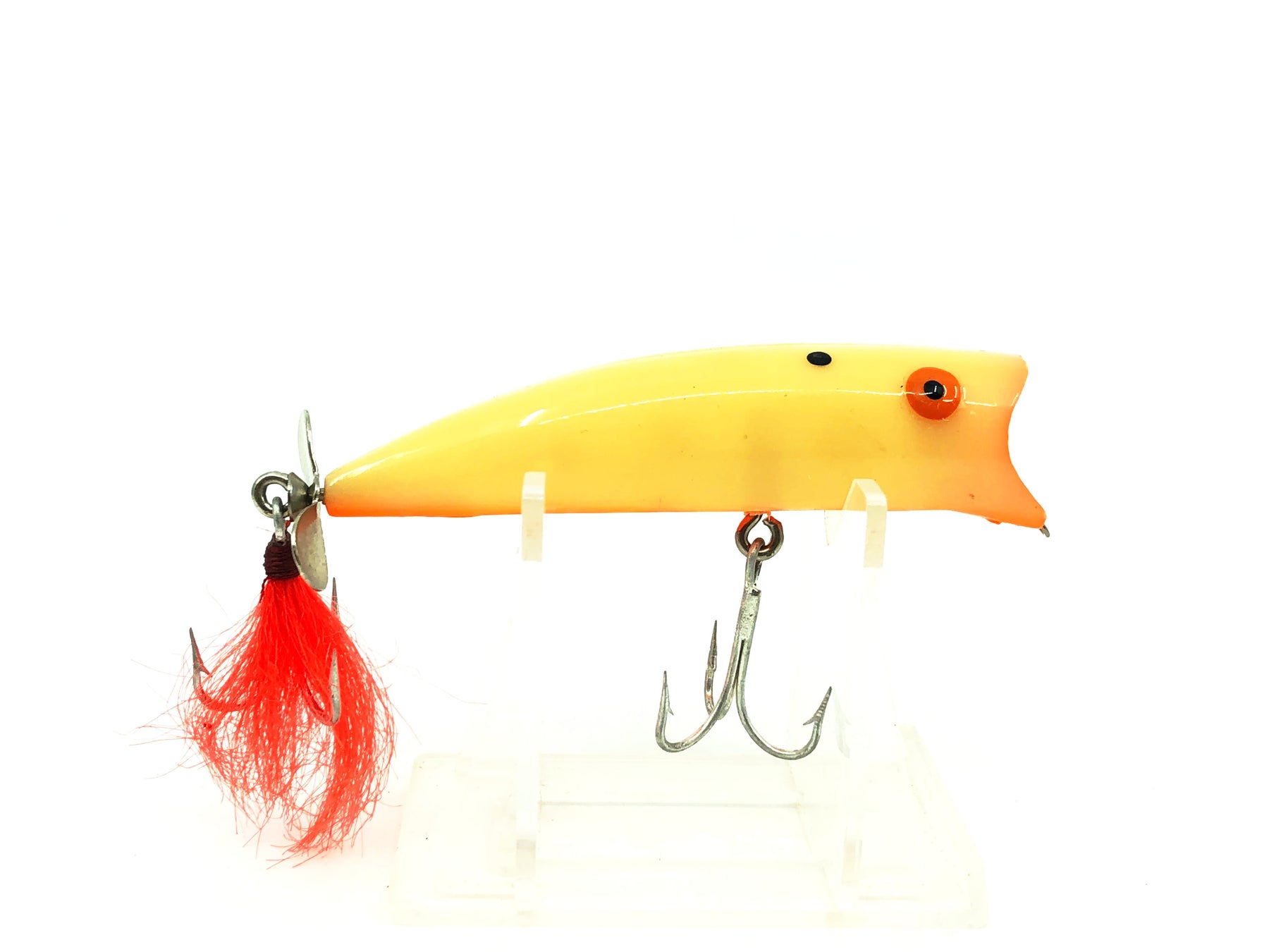 Bomber Popper 3T, BN Bone Color. About 3 1/4" long. Lure is used with some wear and marks but overall in good condition. Harder bomber bait to find. Fish or collect. See photos.