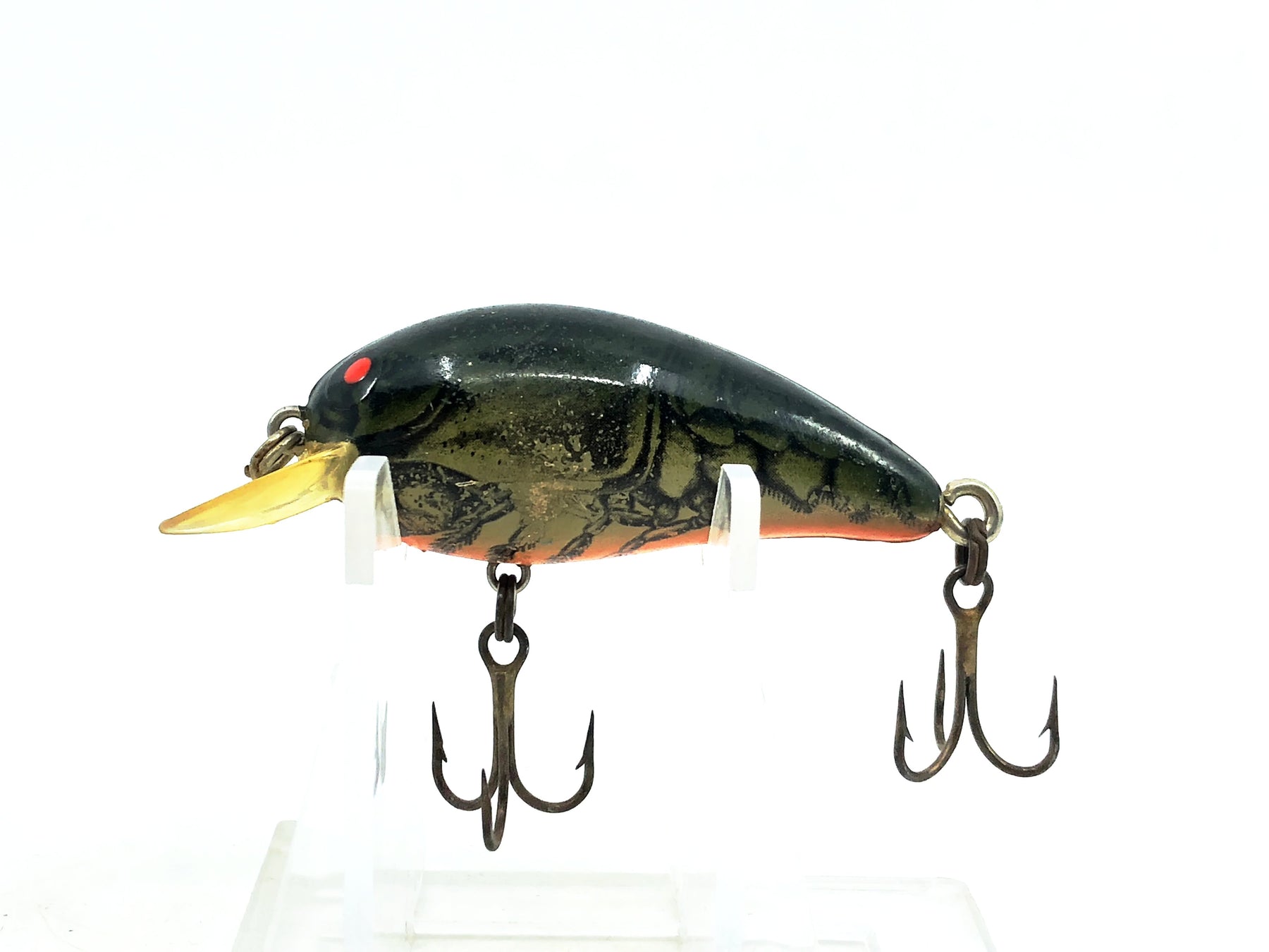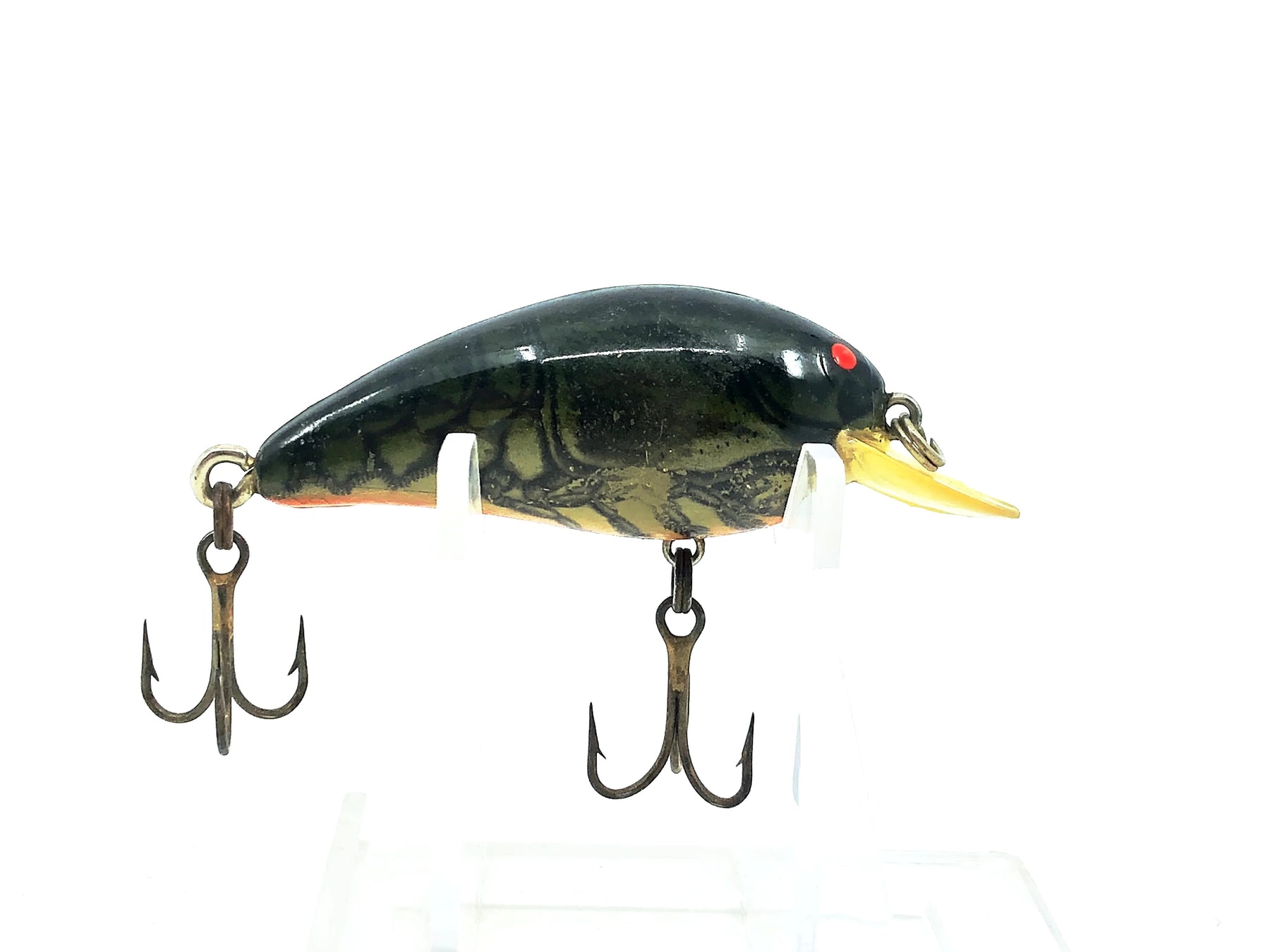 Bomber Model A 2A, XC2 Dark Green/Orange Belly Color Screwtail. Classic vintage Bomber color. About 2 1/8" long body not including lip. Lure is used but in overall good condition with some minor wear and marks. See photos. Tougher color to find. Fish or collect.