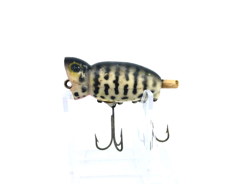 Arbogast Hula Popper Coach Dog Early Plastic. At about 2 3/8" long this popper is in good condition aside from some minor wear and waxing. This lure would be perfect for your display.