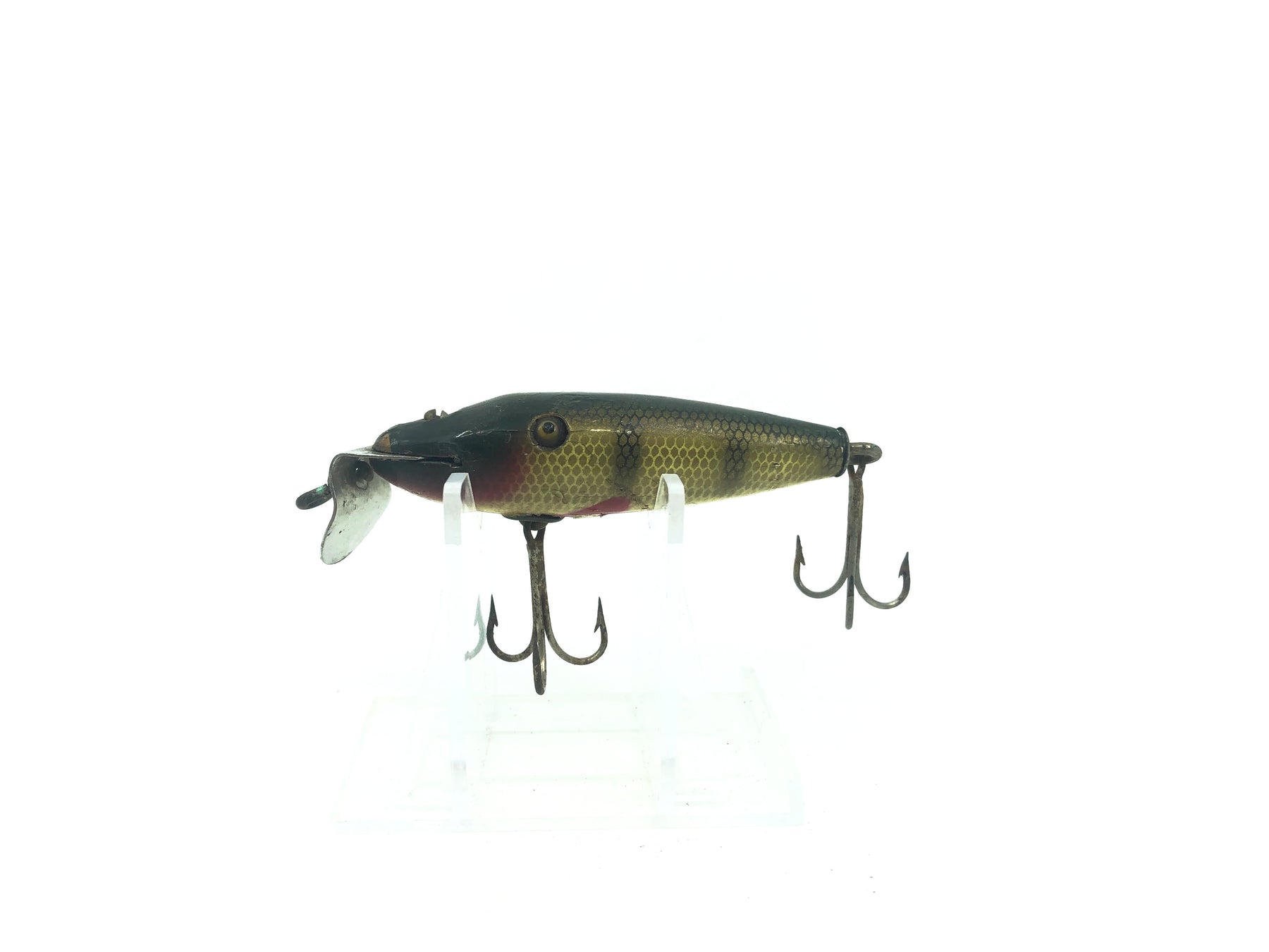 Creek Chub 2200 Midget Pikie Perch Scale 2201 Color. A beautiful vintage wooden Creek Chub lure with glass eyes in one of their most famous colors. Now here's a great vintage lure! Lure in nice shape with some minor wear and a loose lip. About 2 3/4" long. Would make a great addition to any collection. Don't hesitate on this one. See photos. Fish or collect.