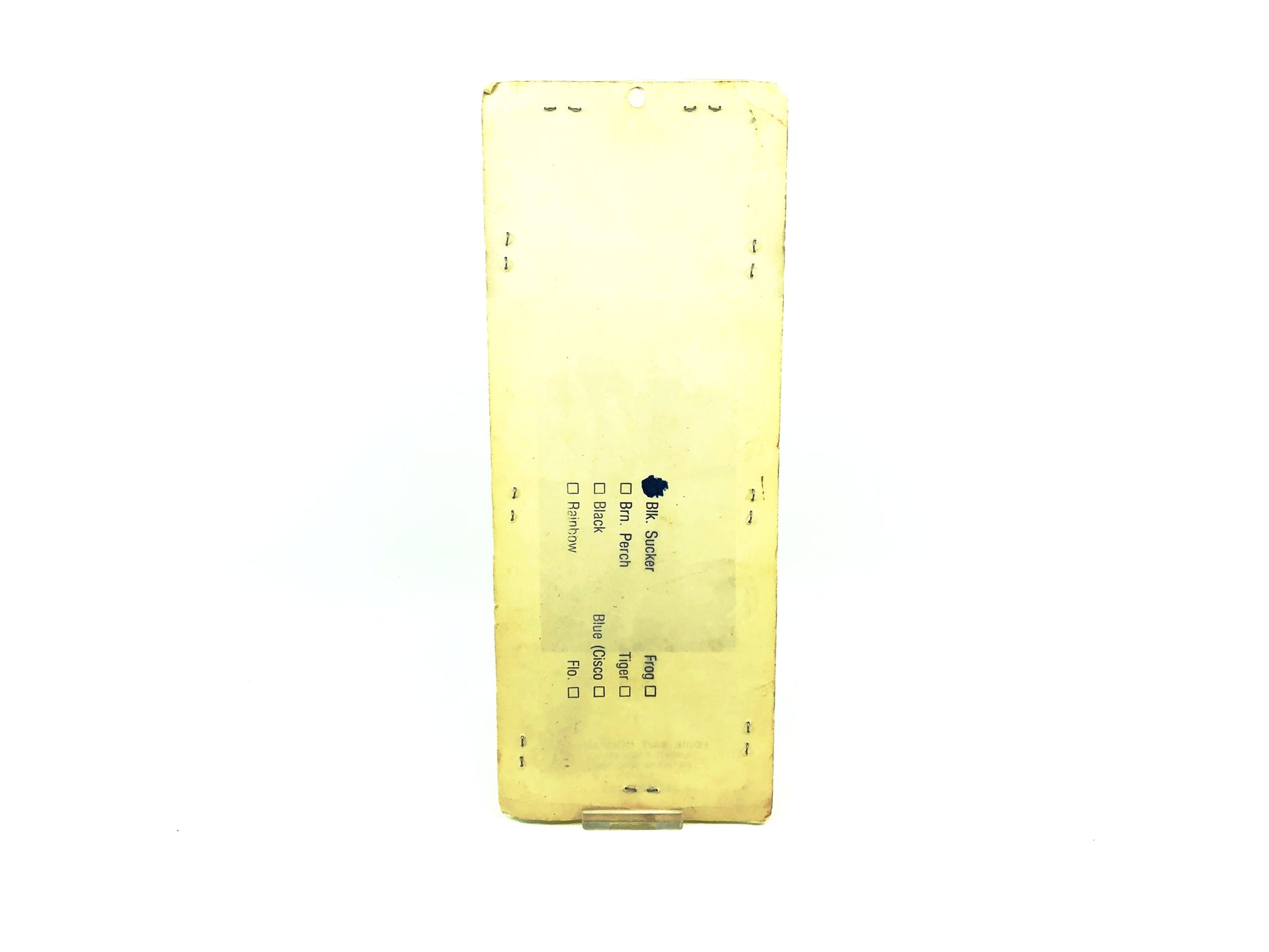 Eddie Bait Muskie Lure, Black Sucker Color New on Card. New old stock here of a harder to find Wisconsin bait. About 6 1/2" long. Lure is new on card, card has some minor wear, see photos. Great musky lure here. Grab this one while you can.