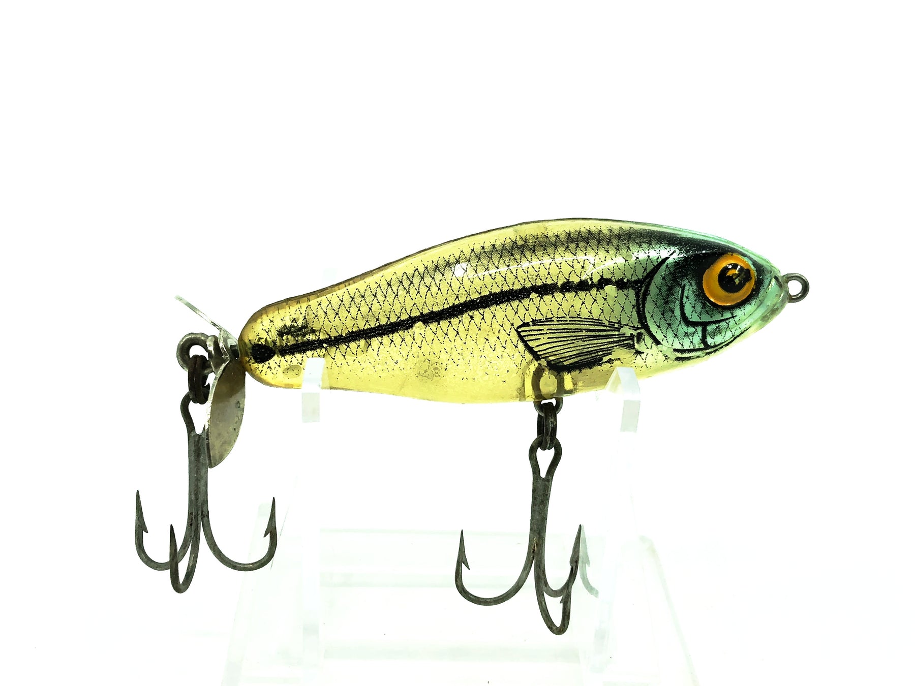 Bomber RRIIP Shad (Rip Shad), 37T XCL Clear Blue Nose Color. Bomber lure that was only made for a few years. About 3" long.  Used with some wear and marks but in good condition, see photos.  Great Bomber lure here.  Fish or collect.