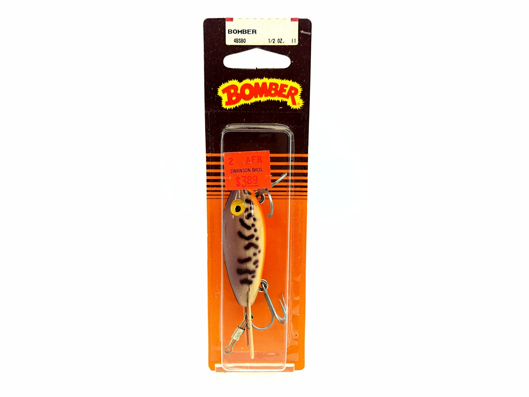 Bomber 400 Series, BSBO Light Orange Crawdad Color on Card. Hard to find these original Bombers on card. About 3 1/4" long. This bait is new on card and the card is in good condition. One of the all time greatest lures in an iconic color. Fish or collect. See photos.