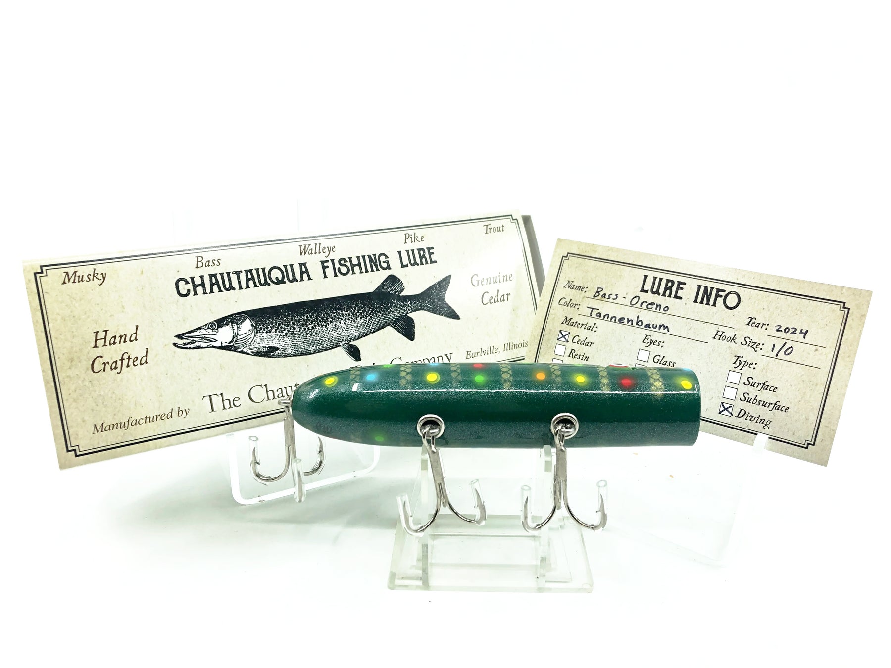 Chautauqua Wooden 5" Bass Oreno, Tannenbaum Color - Limited Holiday Color
