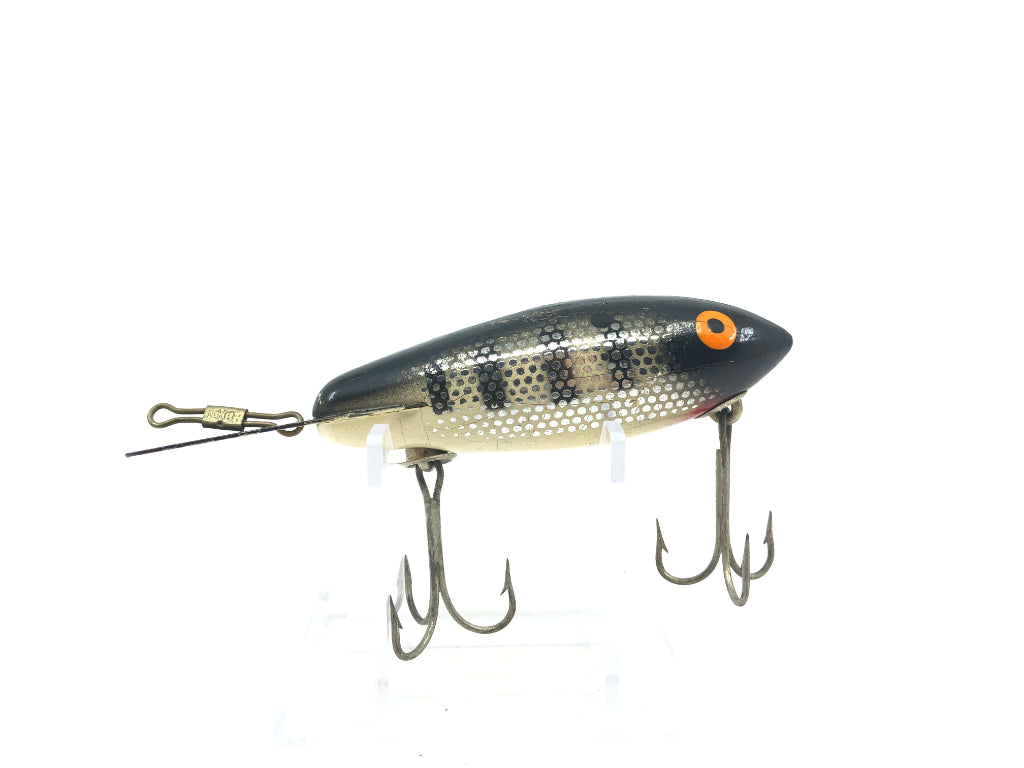Bomber Wooden 600 Series 682 Metascale Black Back Shad Color. At about 4" long this lure is in great condition aside from a few minor blemishes. One of the all time greatest lures in a very brillant color. Fish or collect. See photos.