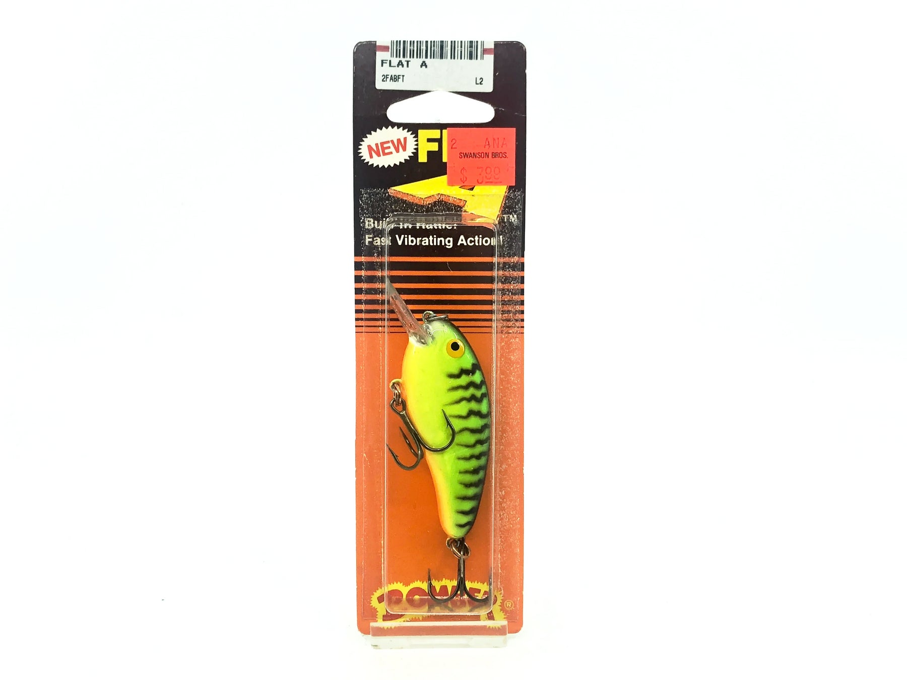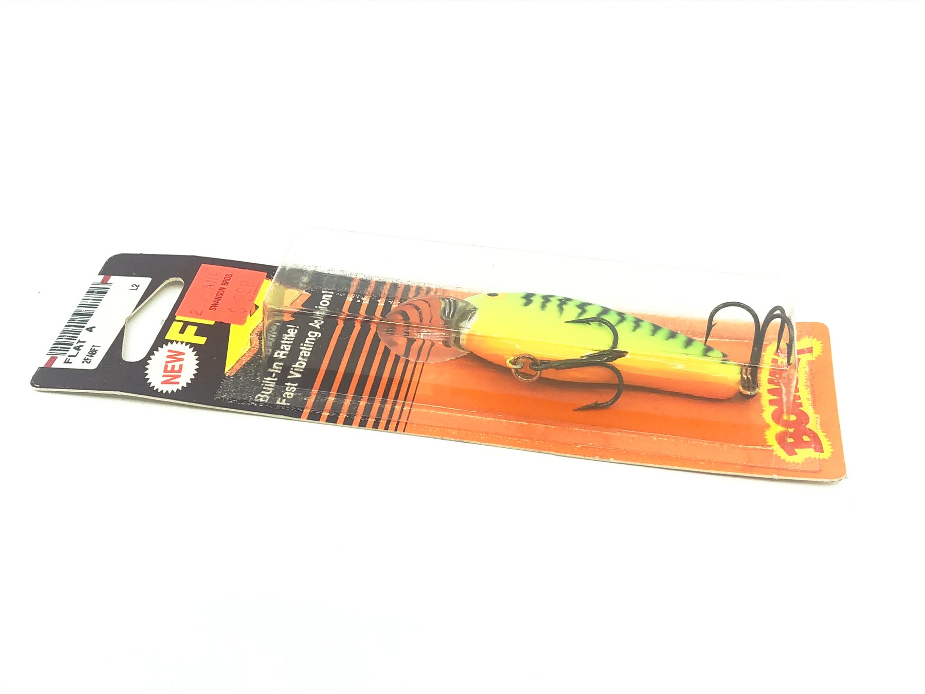 Bomber Flat A 2F, BFT Bengal Fire Tiger Color on Card. About 2 3/8" long excluding lip. Lure is new on card. Card is in good condition but with some minor wear and the bubble is a bit loose, see photos. Fish or collect.