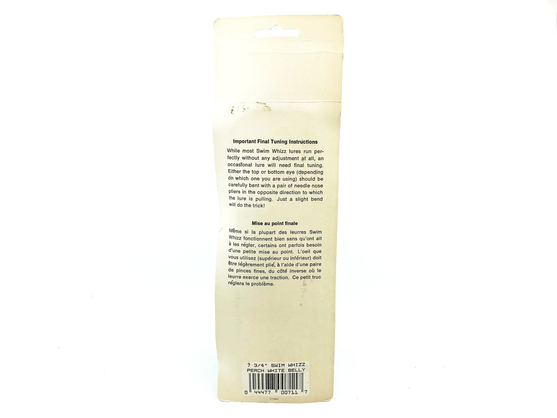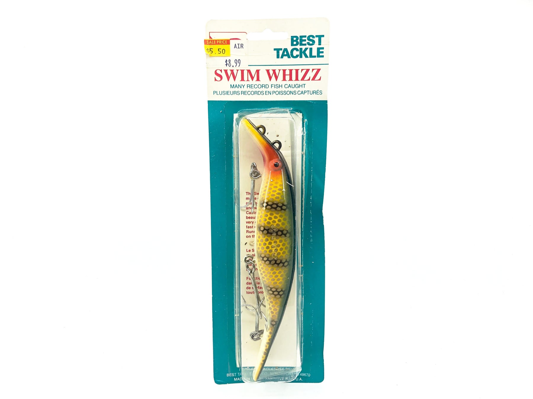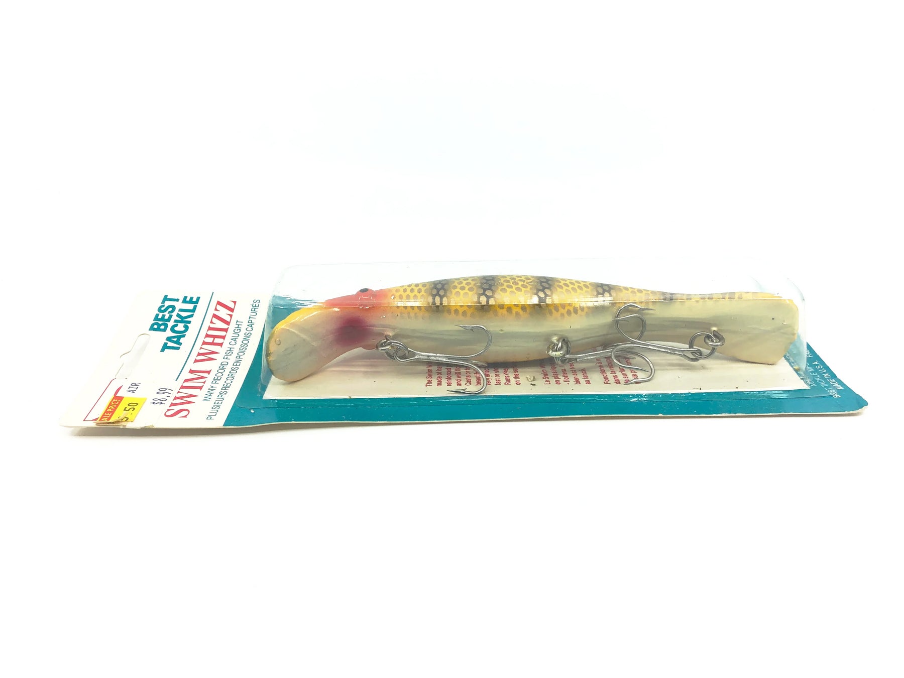 Best Tackle Swim Whizz 7 3/4", Perch White Belly Color New on Card Old Stock. Card has some minor wear but in overall good condition. Lure new on card. See photos.