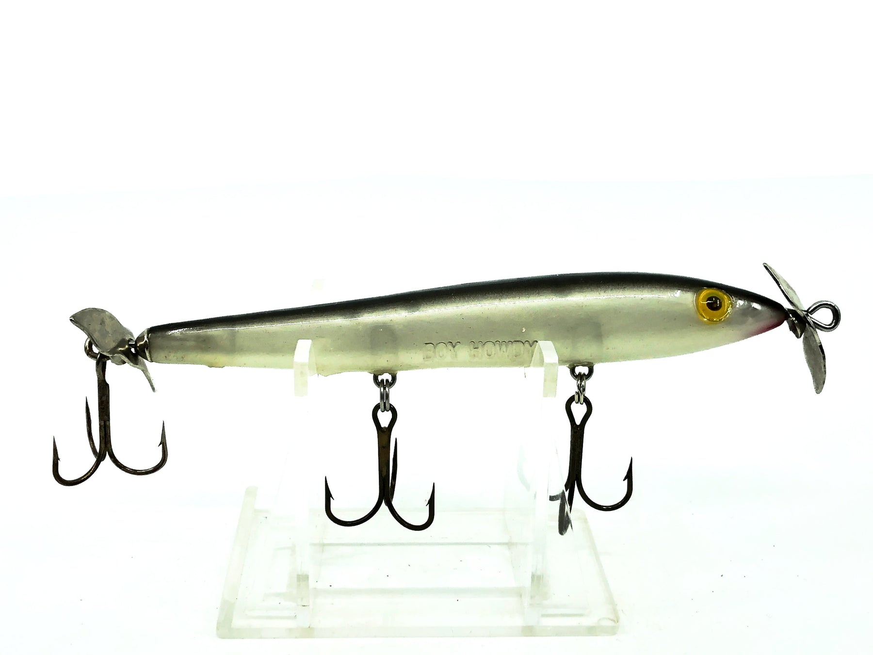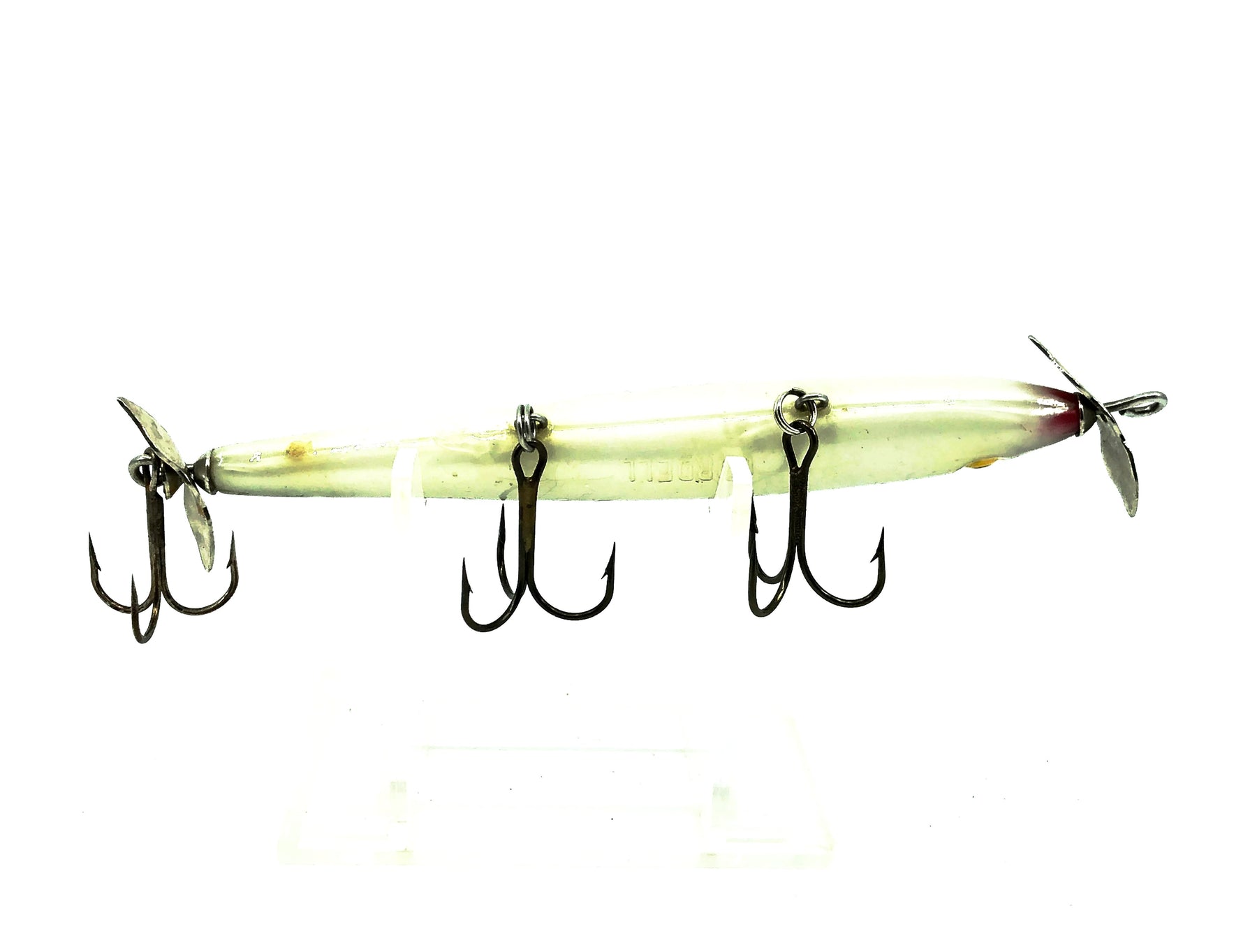 Sounds friendly enough. Dual props stretched out and gurgling like a wounded baitfish just begging for mercy and then – smack! – it’s not so friendly anymore. • Long, slender profile makes it a consistent strike producer • Front and rear blades simulate sputtering baitfish • Quality materials and craftsmanship • Hooks all kinds of gamefish