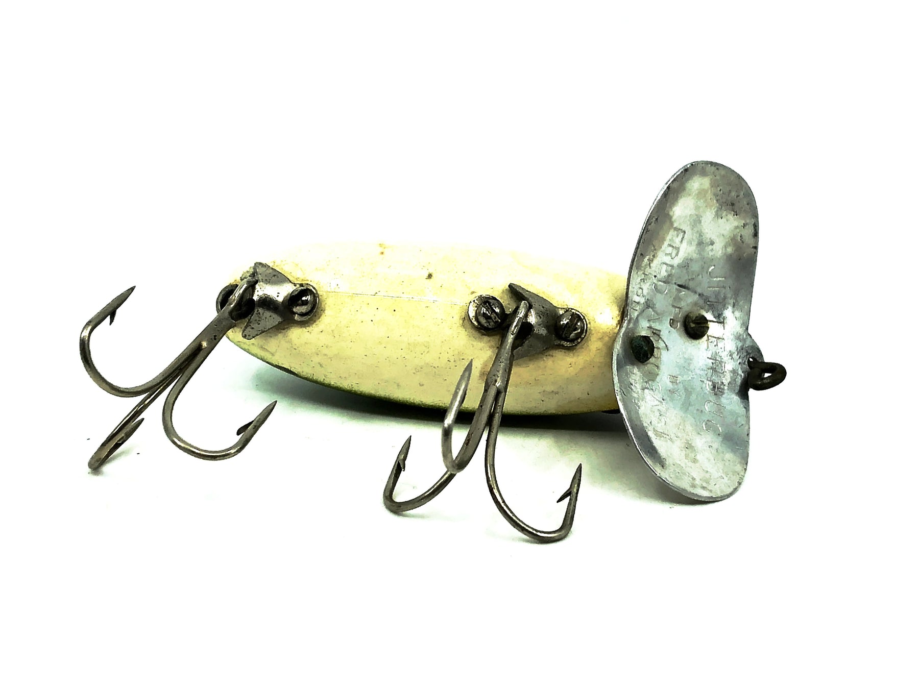 Jitterbug, World's best surface bait! Jitterbugs wobble. . . the double-lobed "lip" creates a loud paddling noise . . . takes bass day or night. Retrieve continuously or by hesitation.