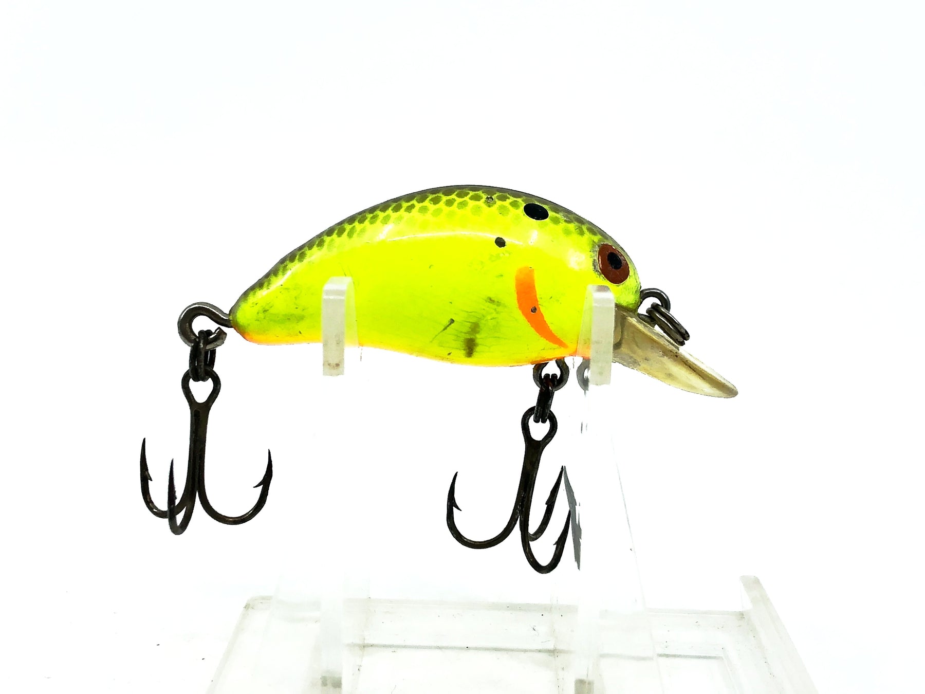 Bomber Model A 1A, BY Brown on Yellow/Orange Belly Color.  About 2 1/4" long including lip.  Used with some minor wear but overall good condition, see photos.  Fish or collect!  Great vintage lure!  Screwtail.