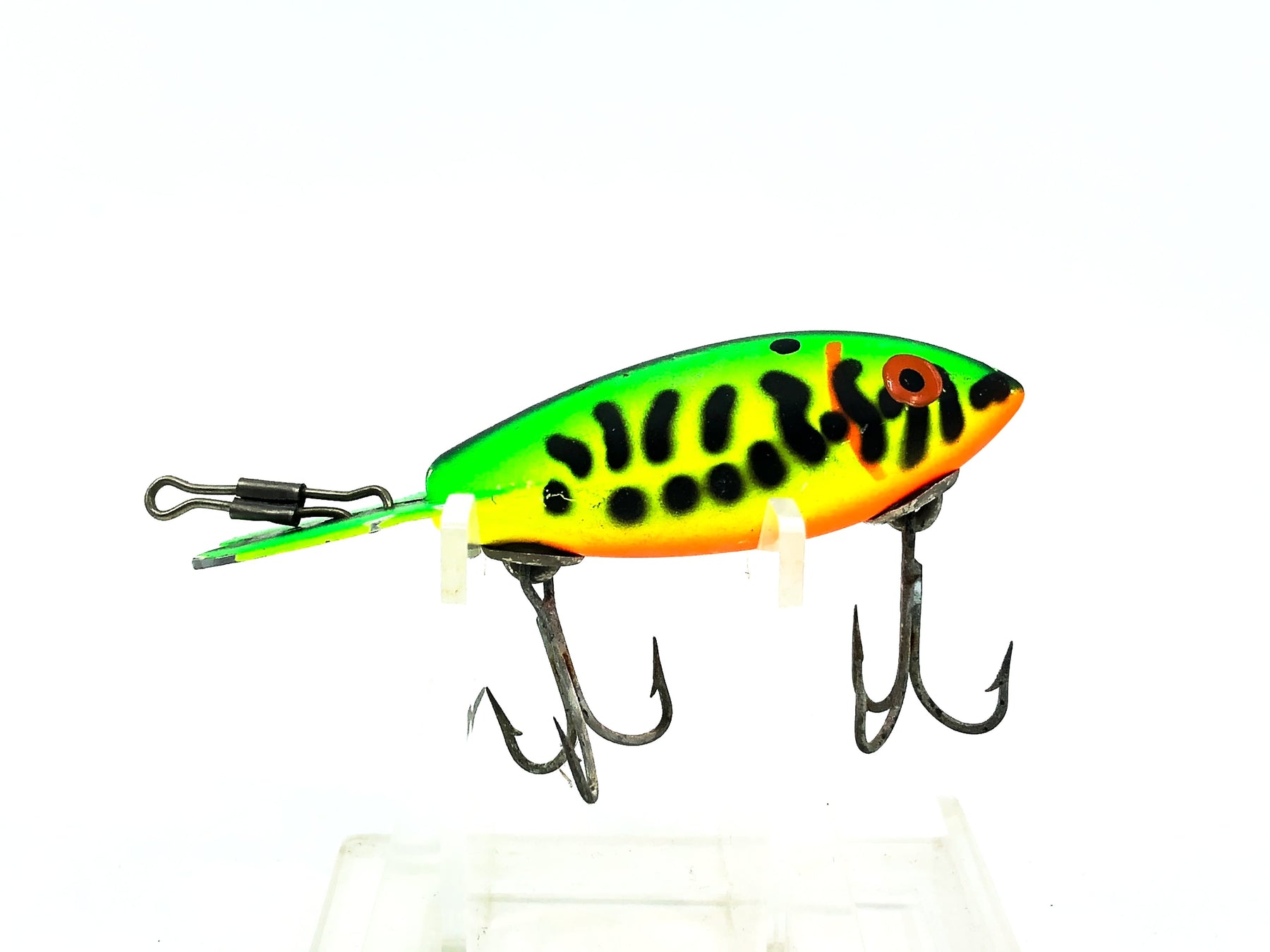 Bomber 300 Series FT Fire Tiger Color. About 2 3/4" long.  Lure is used with minor wear but overall in good condition.  See photos.  Classic lure that isn't made anymore.  Fish or collect.  Tougher color to find.  Has internal rattle.