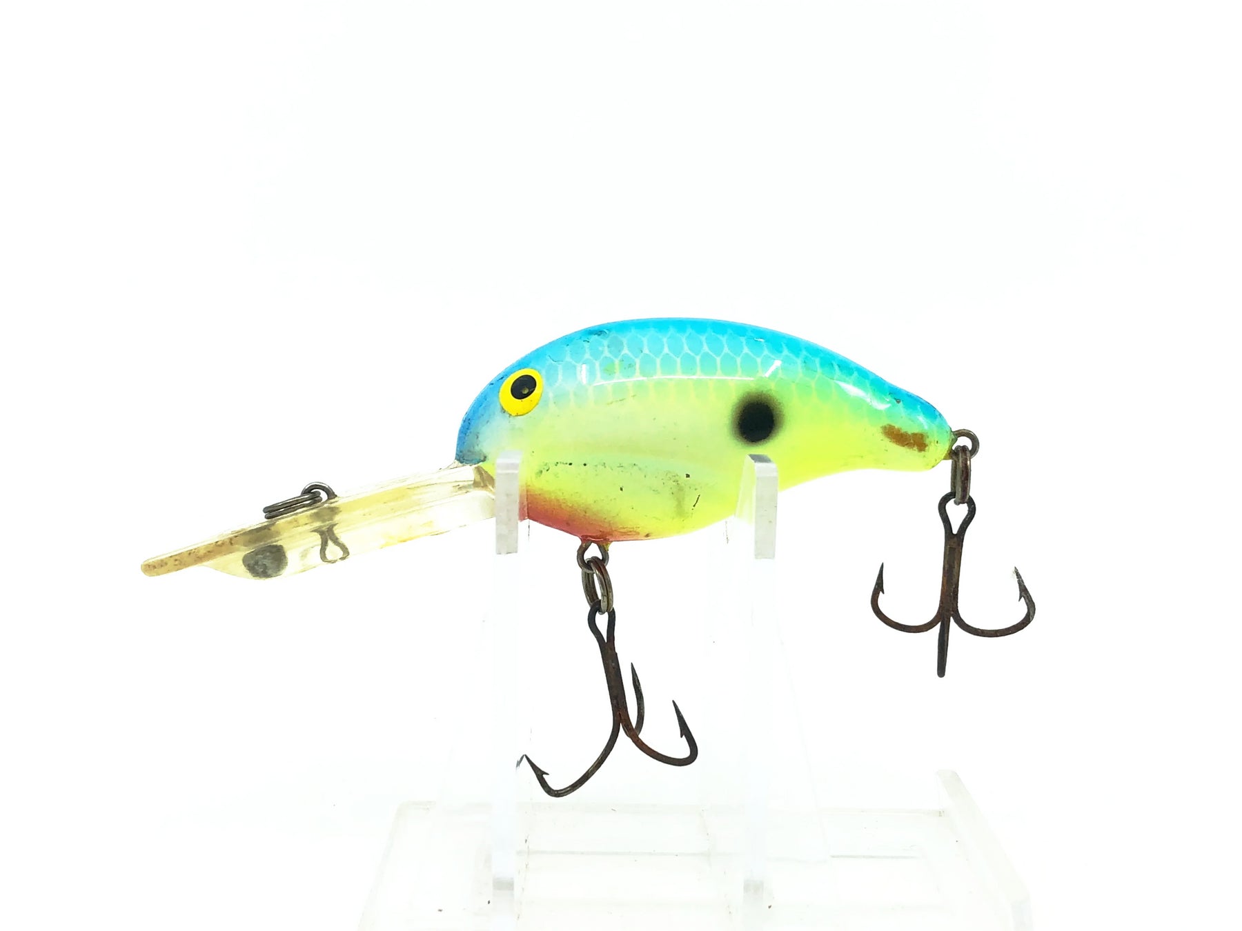 Bandit Series 300, #36 Chartreuse/Blue Back Color. One side of the lure is more chartreuse then the other. Lure is used with some wear and marks but in good condition, may clean up a little better. About 3 1/4" long including lip. Grab these while you can! Great deal on a bait that's so sought after. Classic Bandit lure! Great one to fish.