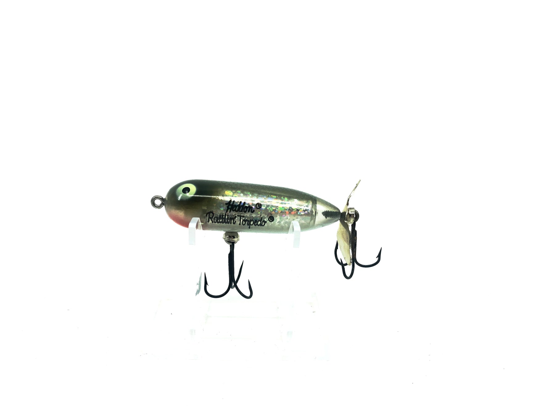 Heddon Denny Brauer Rattlin' Torpedo, Silver Flitter Color. Nice lure here. About 2.5" long. Used but very good condition, see photos.