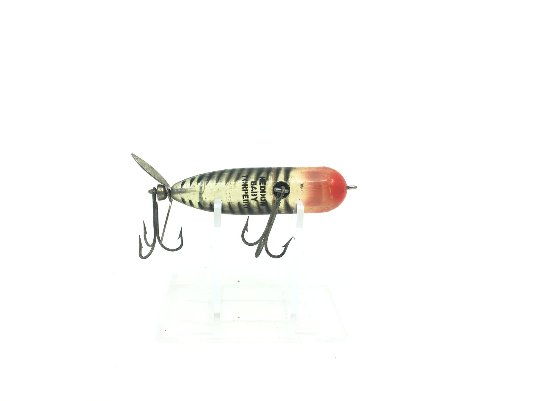 Heddon Baby Torpedo XBS Silver Shore Color. Classic top water bait here. About 2 1/2" long. Lure is used with very minor wear. Fish or collect. See photos.