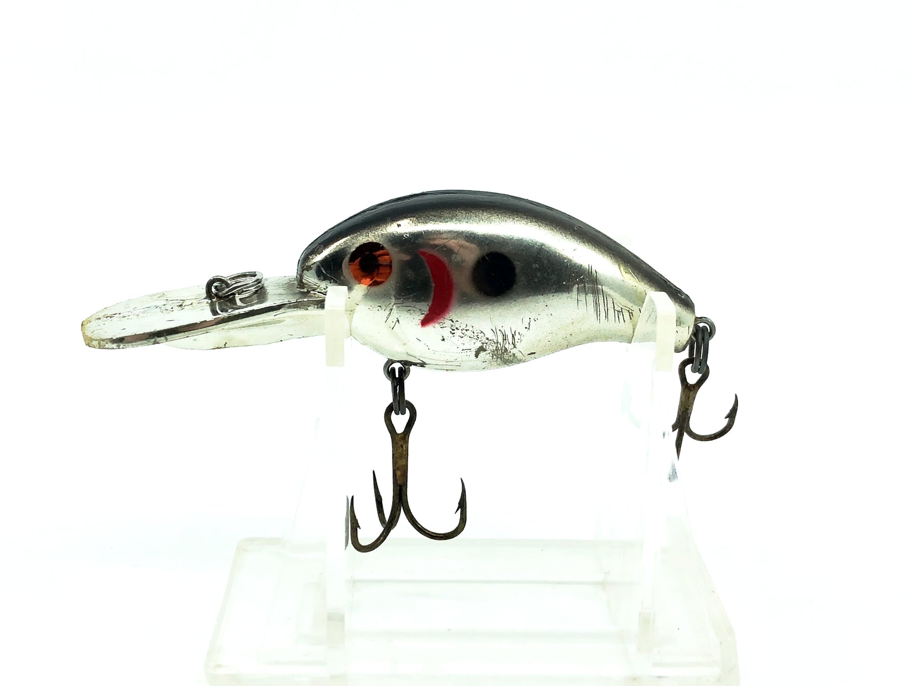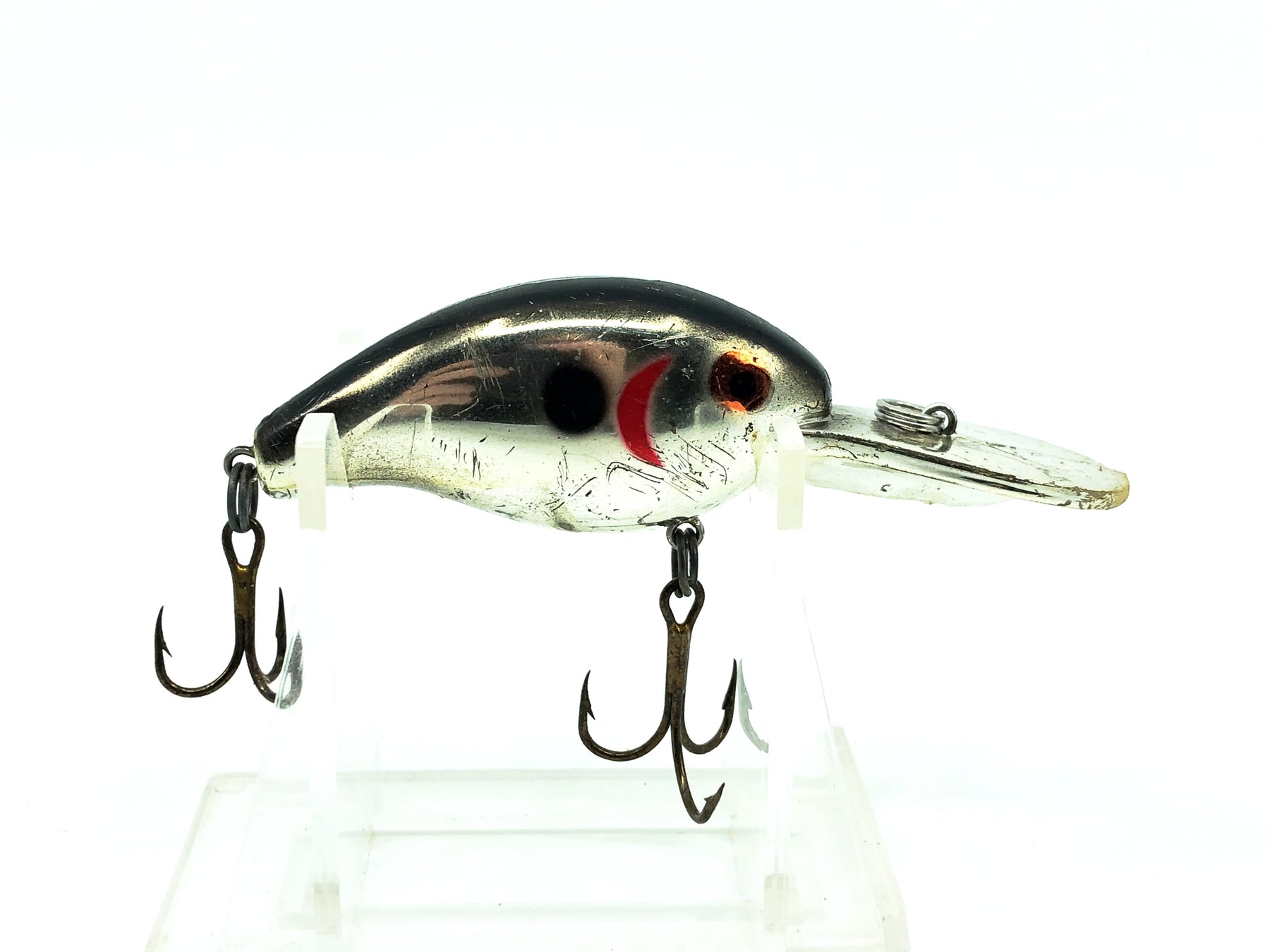 Deep Big-O Type Lure, Chrome/Black Back Color. Great lure here from an unknown lure maker. This bait is about 3 1/8" long overall. Used with some minor wear but in overall good condition. Fish this great deal!