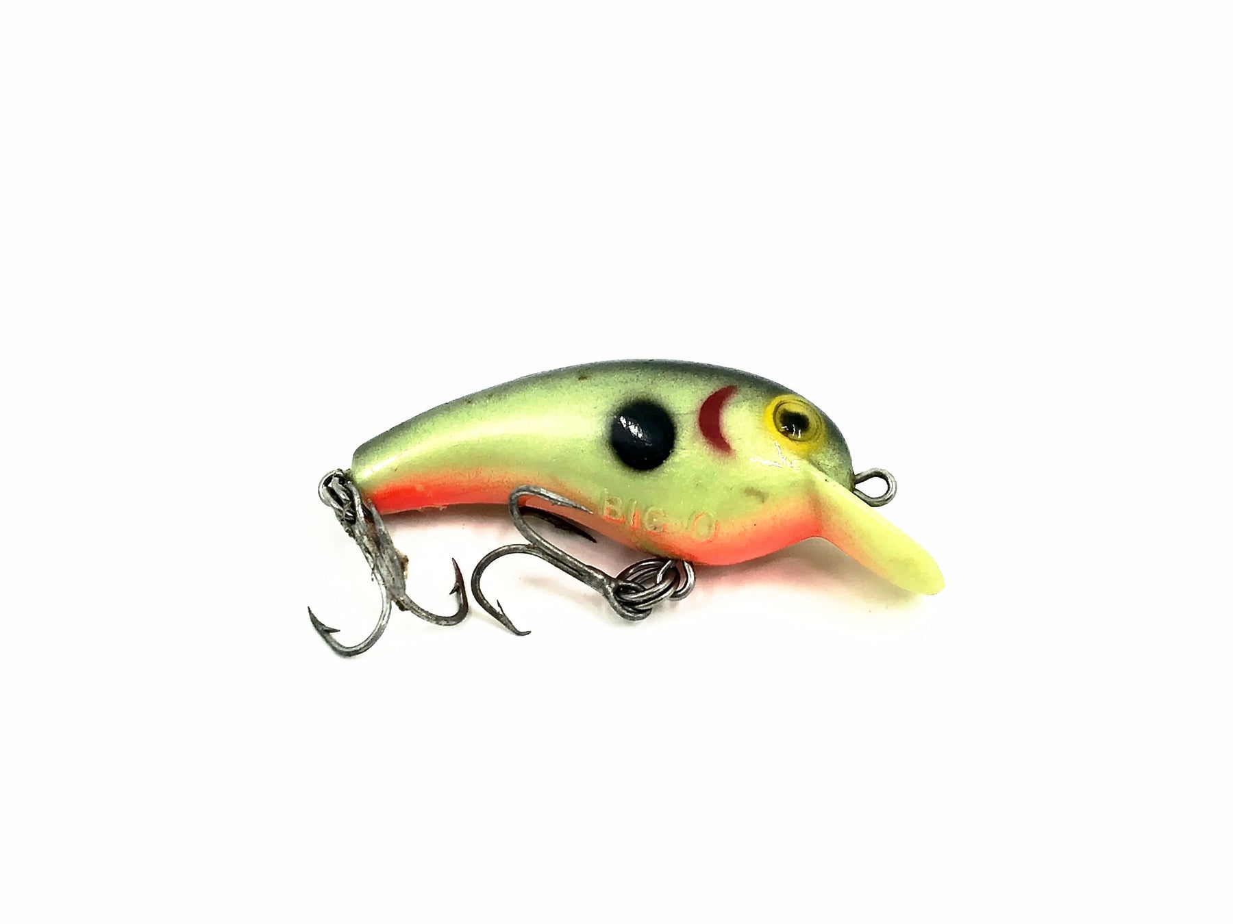 Cotton Cordell 7600 Big-O, Green Perch Color. About 1 3/4" long not including the lip. Used with some wear and marks but overall good condition, see photos. One of the most successful fishing lures ever made. Fish or collect! Great vintage lure.