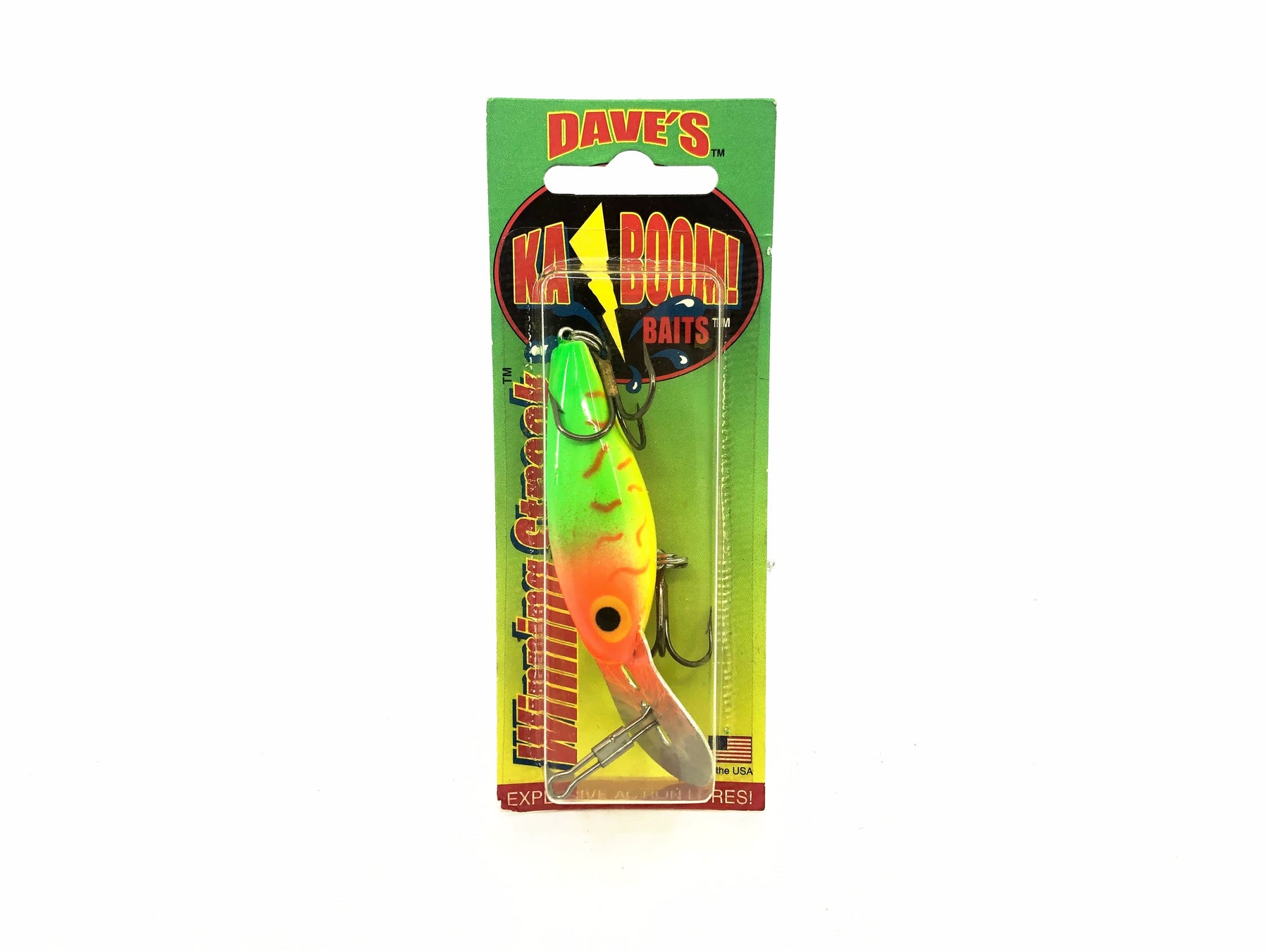Dave's Ka Boom Baits Winning Streak, Red Hot Tiger Color on Card. Great bait inspired by the Storm Thin Fin Hot'N Tot. This lure is about 3 1/8" long including the lip. This lure is new in packaging and the packaging is in great condition. Fish or collect, see photos.