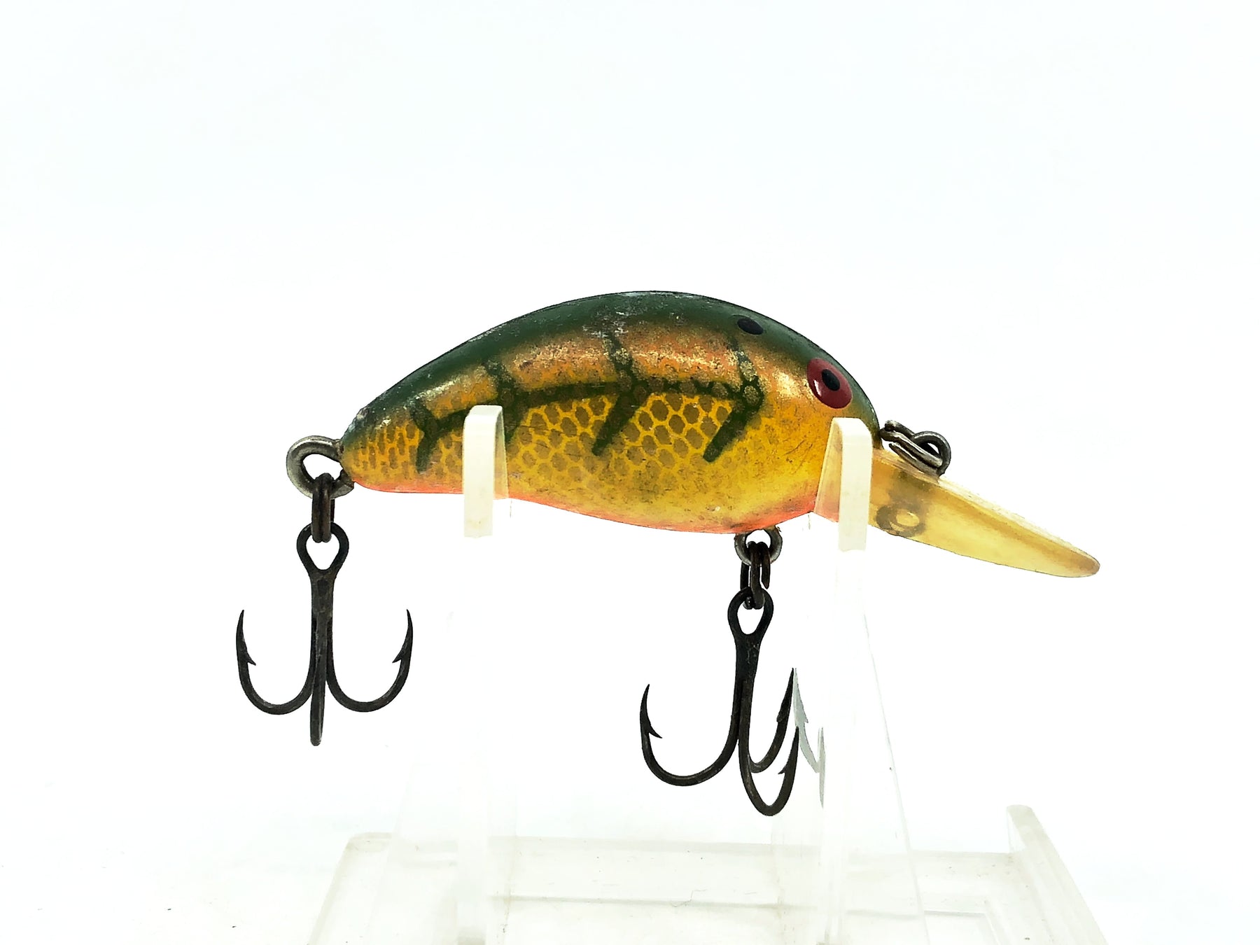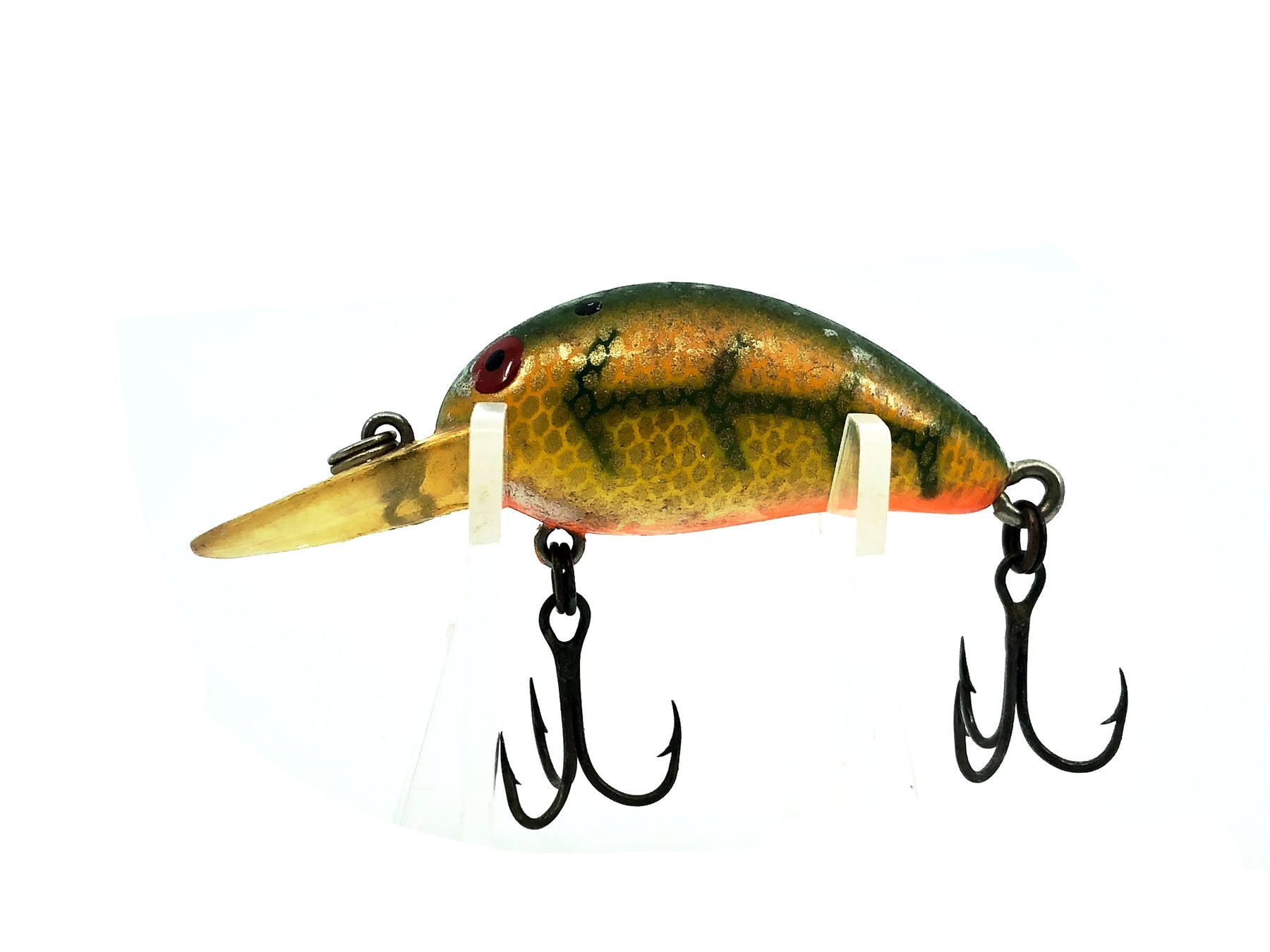Bomber Model A 5A, #07 Yellow Perch Color Screwtail Model. About 2 1/2" long including lip. Used with some wear, waxing and marks but overall good condition, see photos. Fish or collect! Great vintage lure! Screwtail version.