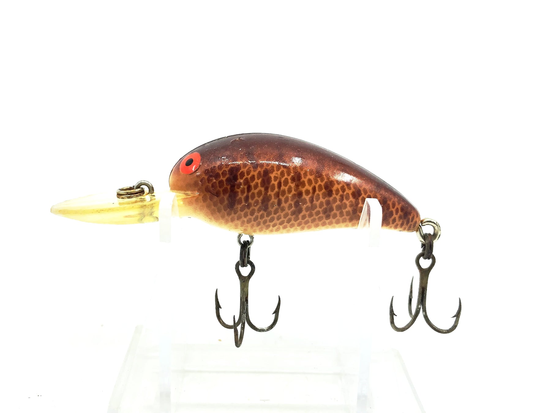 Bomber Model A 6A, SM Smallmouth Color. About 2 1/8" long excluding lip.  Used with some wear and marks but overall good condition, see photos.  Fish or collect!  Great vintage lure!  Screwtail.