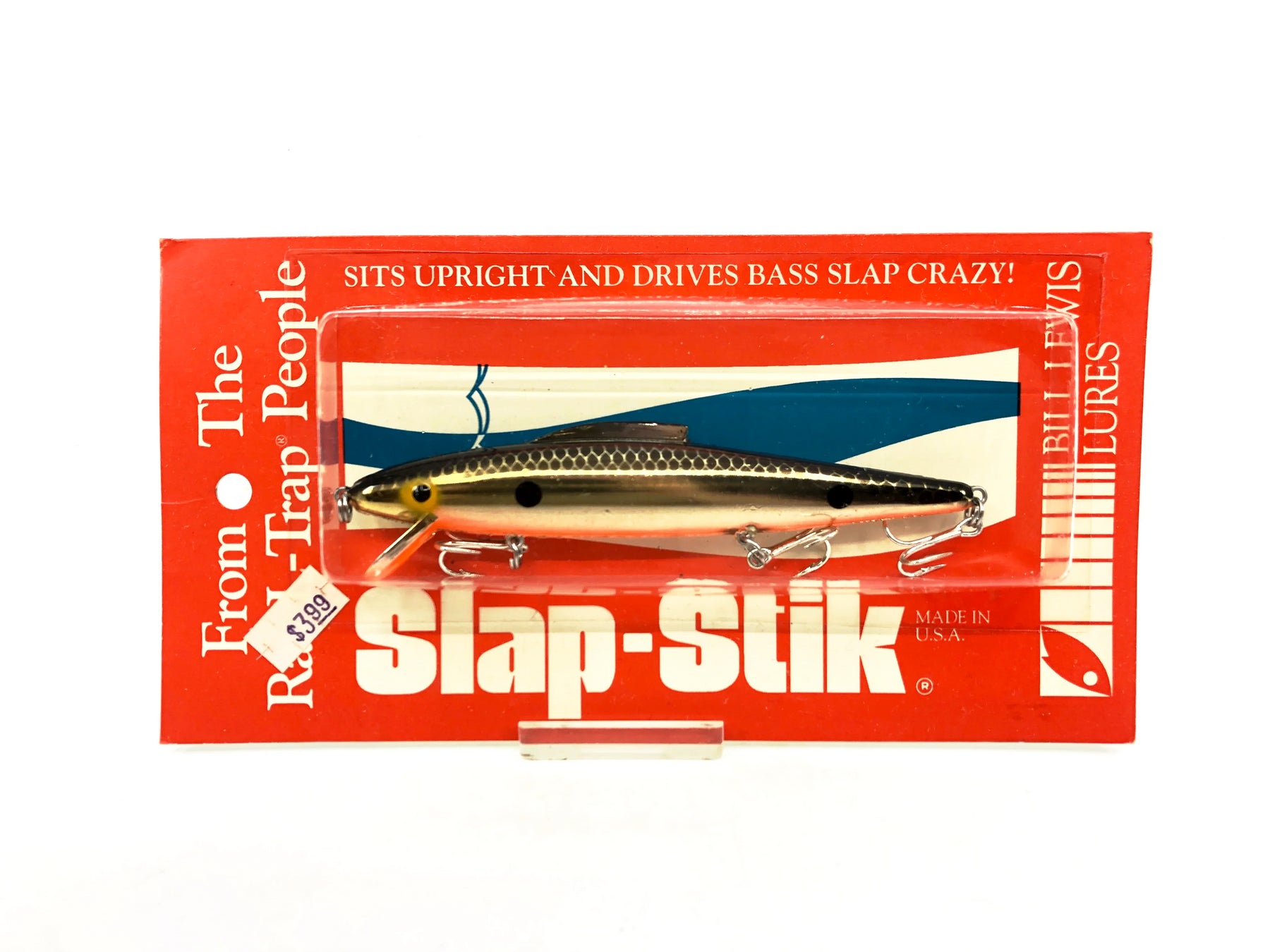 Bill Lewis Slap-Stik, #26 Gold/Black Back Color on Card. Great discontinued bait here. This Bill Lewis bait is about 4 3/8" long. Lure is new on card and card is in great condition. See photos.