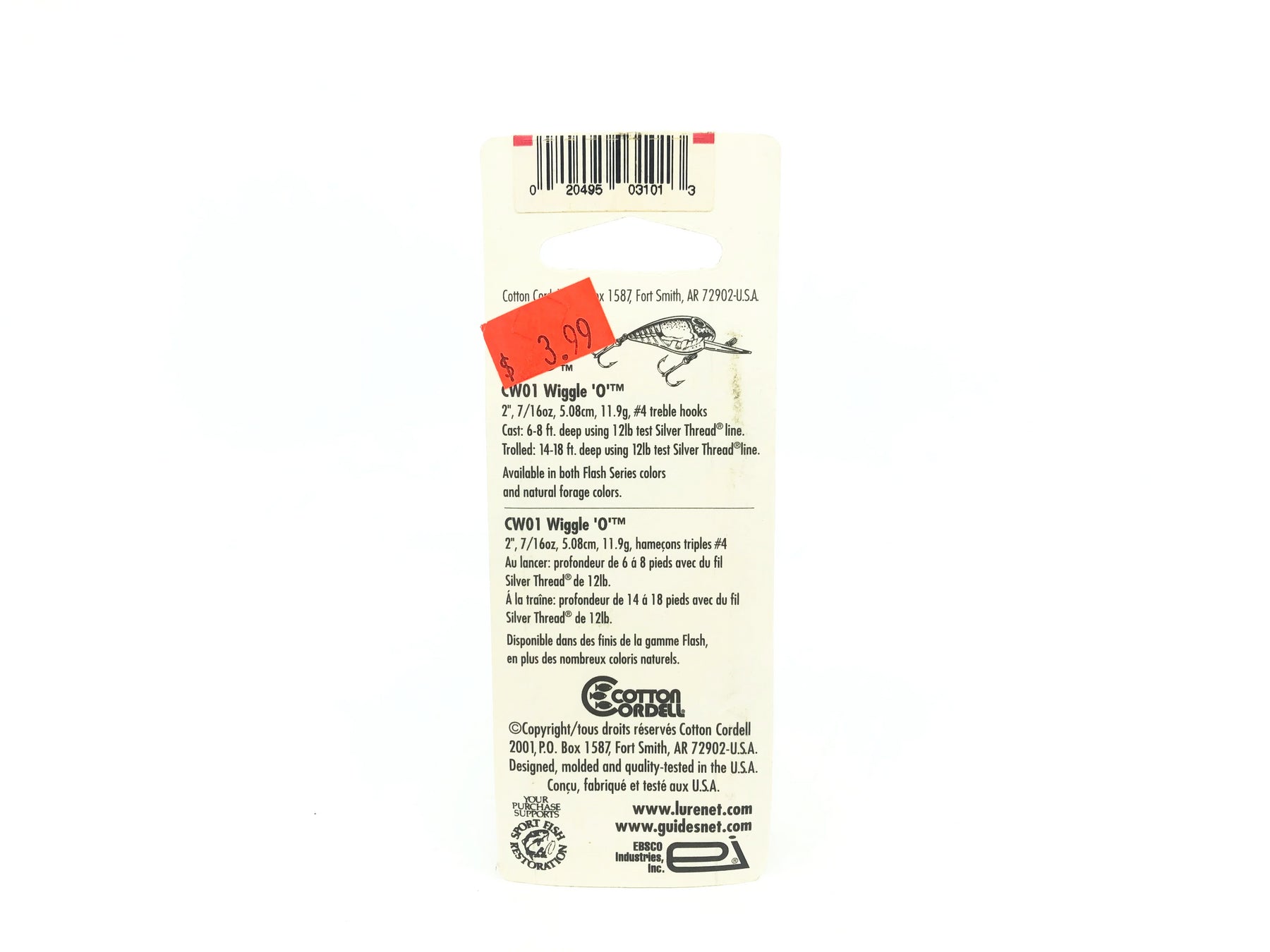 Cordell Wiggle-O, Firetiger Color on Card. Lure is about 2" long not including lip. Great for fishing or collection. Lure is new on card and the card is in good condition. See photos.