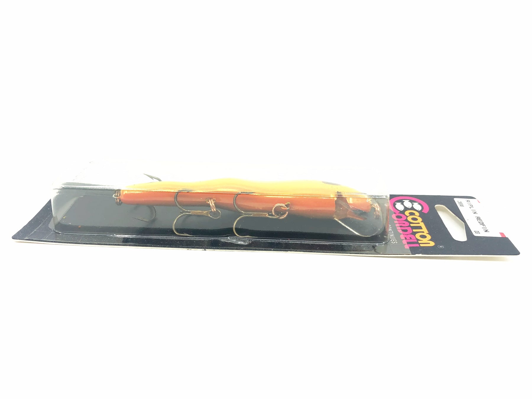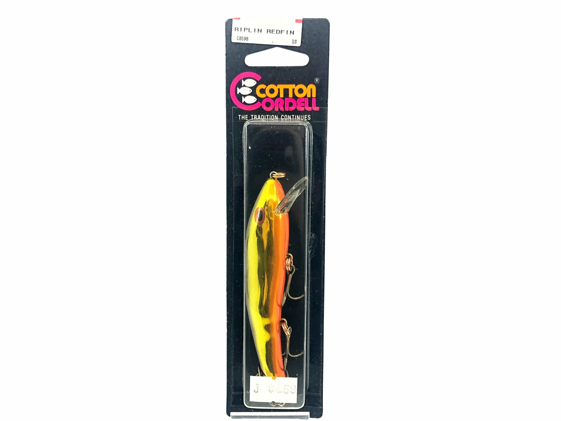 Cotton Cordell Ripplin Redfin, #03 Gold/Black Back Color on Card. About 4" long. The lure is new on card and the card is in great condition. This is a harder to find Cordell in an even harder color. See photos.