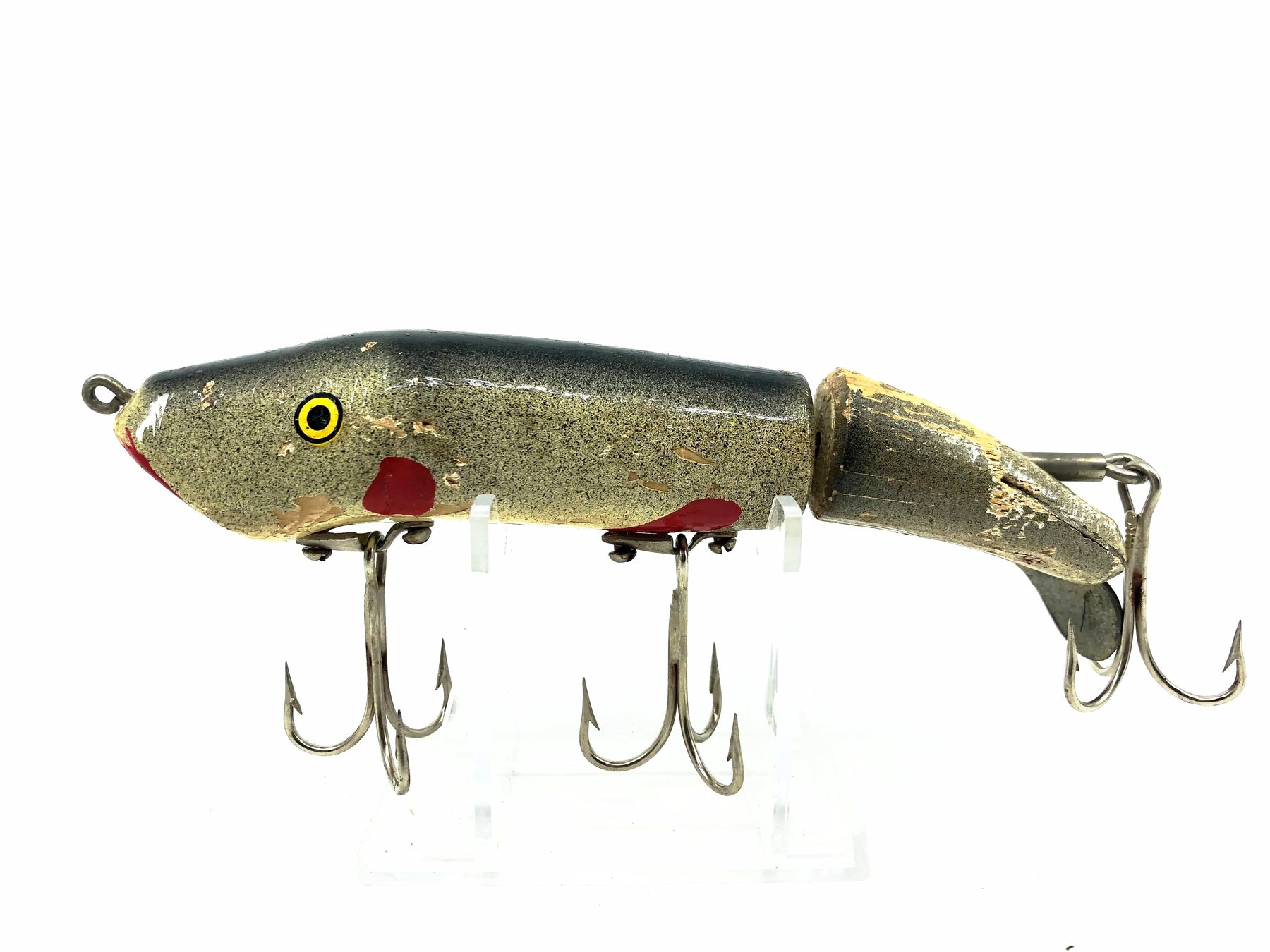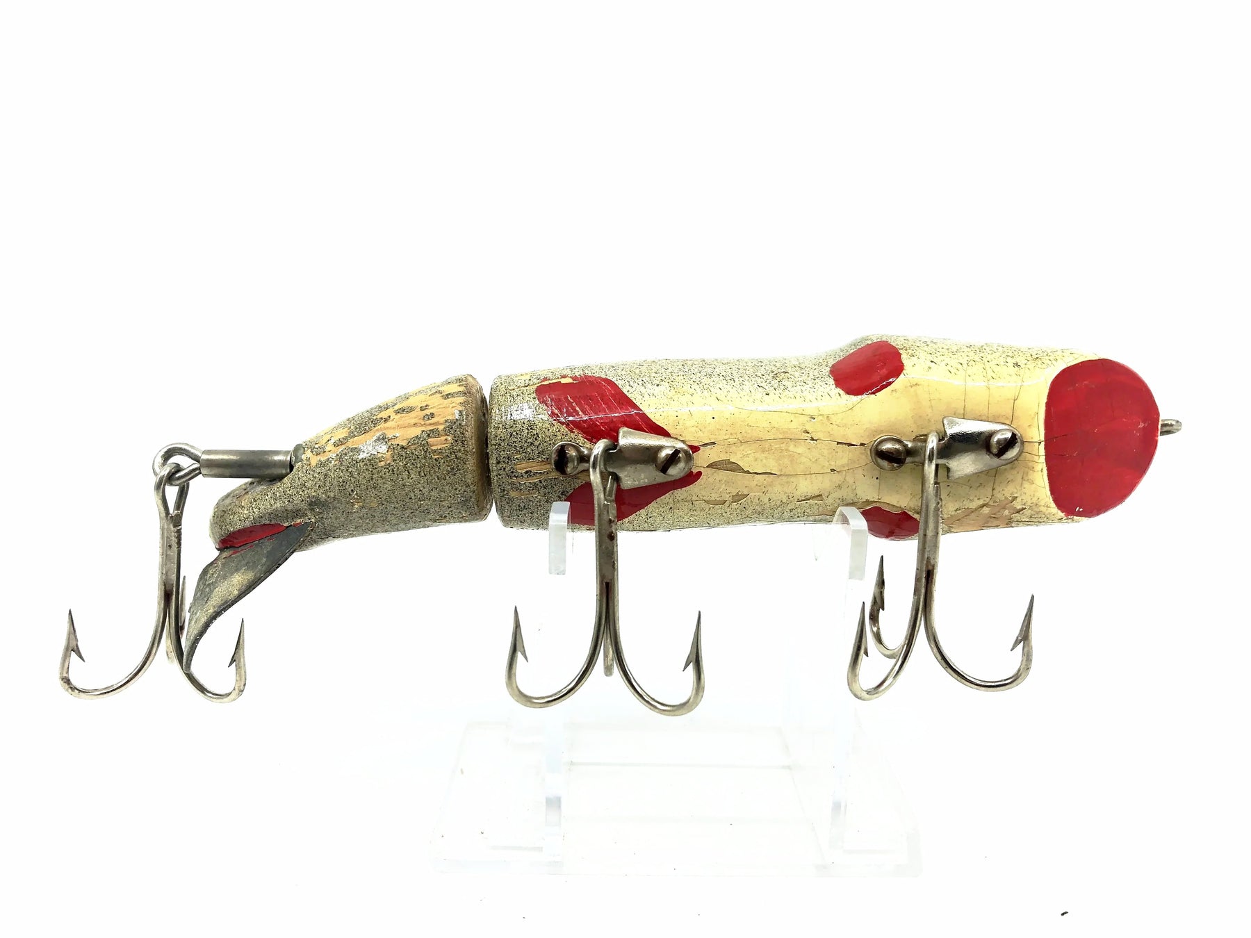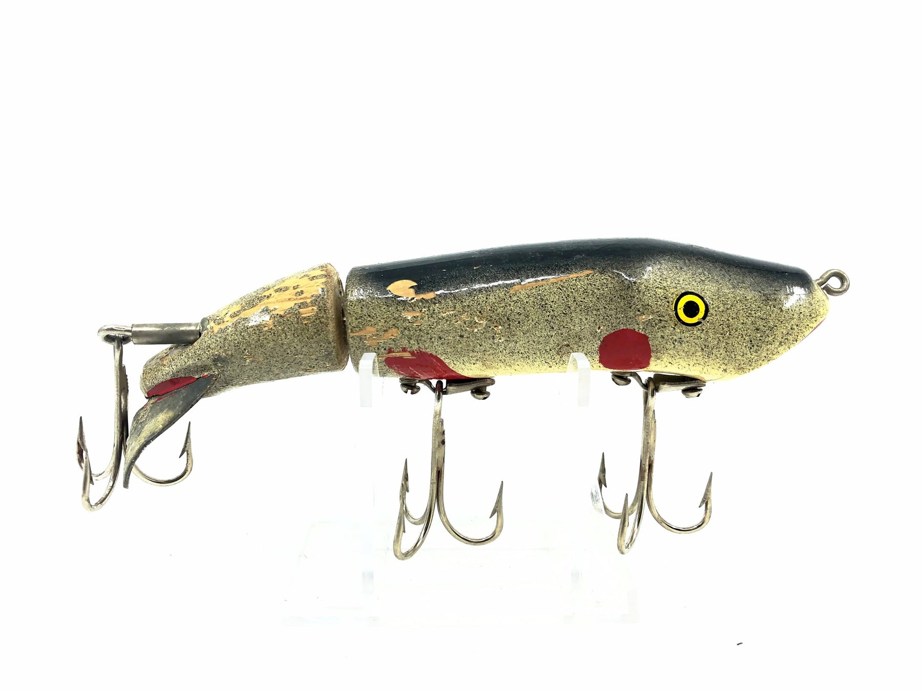 C.C. Robert's Little Mud Puppy, Natural Color. Newer model but still a discontinued size. Lure is about 5 1/4" long. This vintage Mud Puppy is used with a good amount of cracks and missing paint but still in overall ok condition. Fish or collect, see photos.