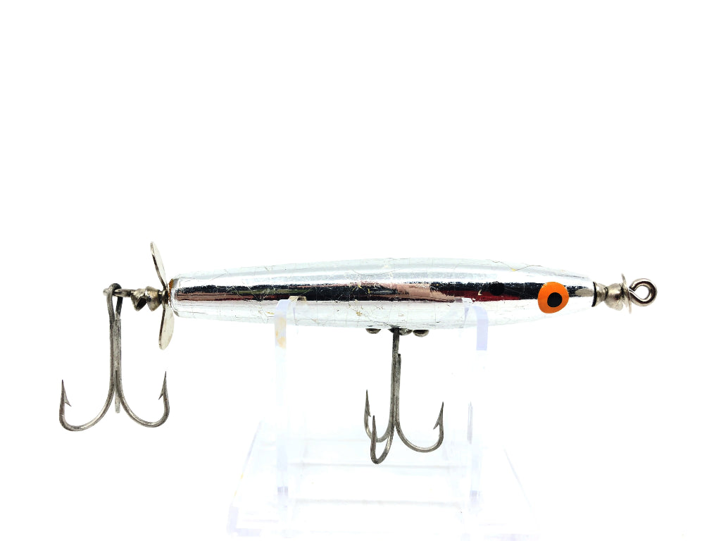 Bomber Spinstick 7300 Series Silver Chrome Color. Great wooden bait here. About 3 5/8" long. Lure is used but in good condition aside from some cracks. This discontinued lure offers unique top water action, fish or collect. See photos.