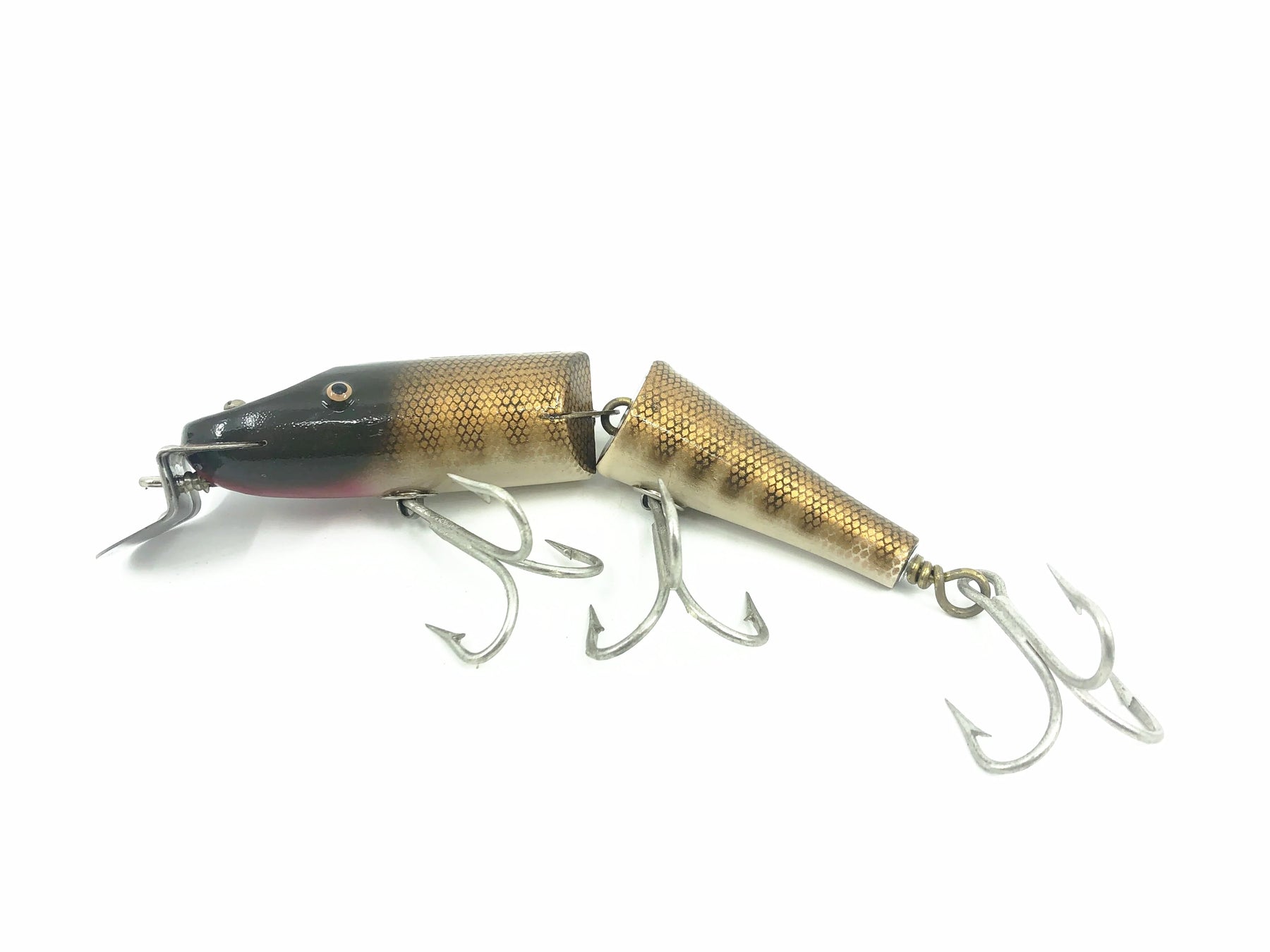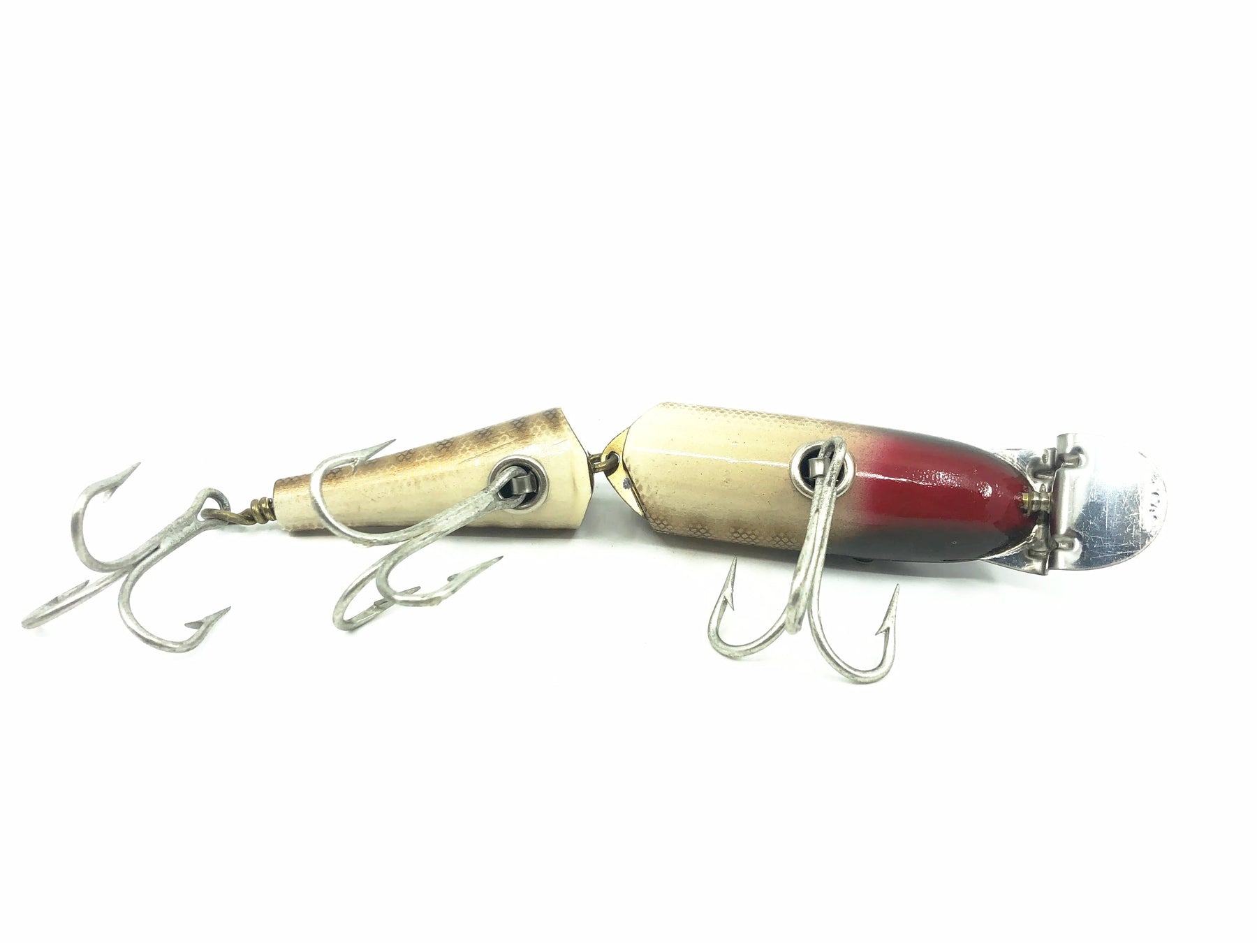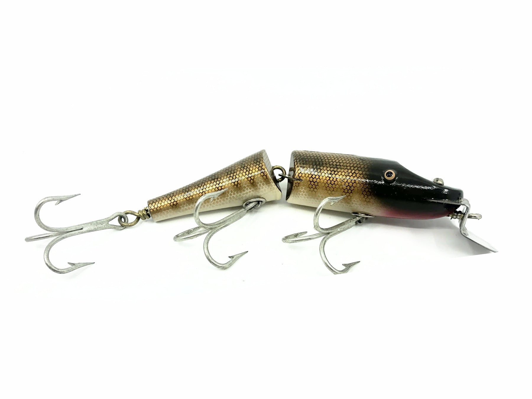 Creek Chub Jointed Husky Pikie 3000, Pikie Scale Color 3000W.  About 6" long body excluding lip. Great vintage lure here. Wooden lure and tack eyes. The lure is in great condition with some minor wear and marks.  Nice combo.  This one won't last long so grab it for your collection while you can.  See photos.