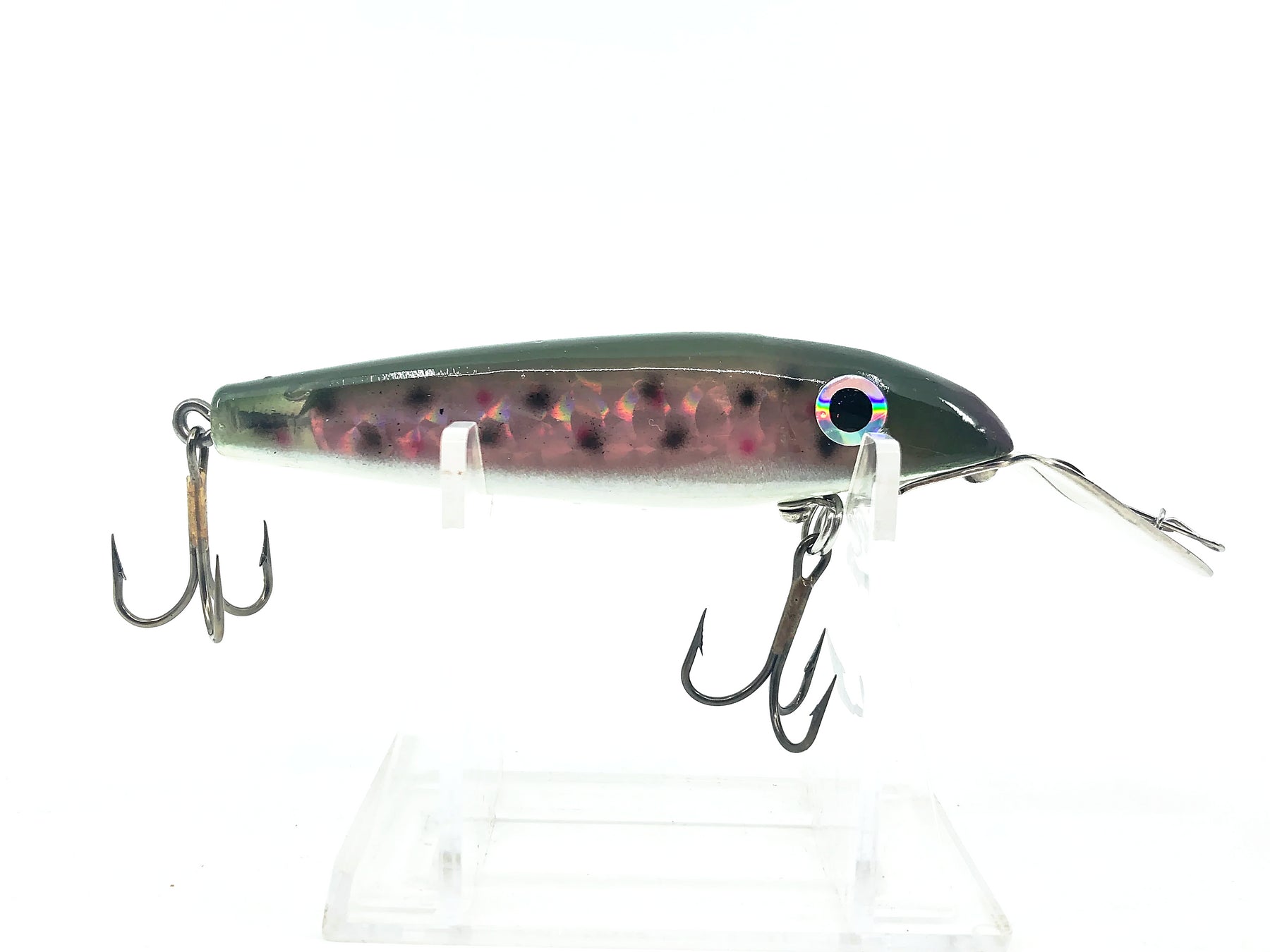 Cisco Kid 200 Series, Rainbow Trout Color.  About 4 1/4" long including lip.  Great vintage Cisco Kid lure here.  Great for fishing, walleye, bass, pike!  Great for collecting. This is a newer vintage Cisco Kid but still hard to find! Lure is used but appears to have never been fished and is in overall great condition. See photos.  Fish or collect!  A tougher Cisco Kid to find.