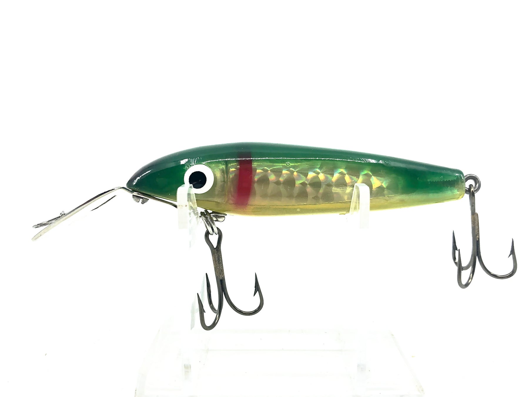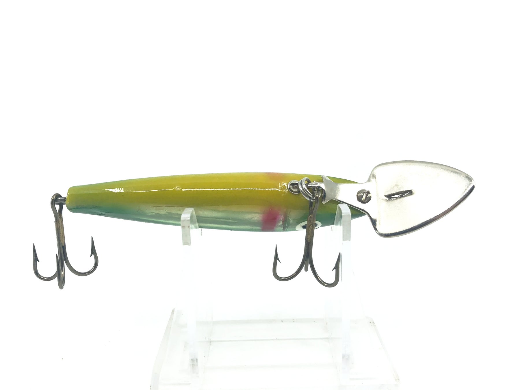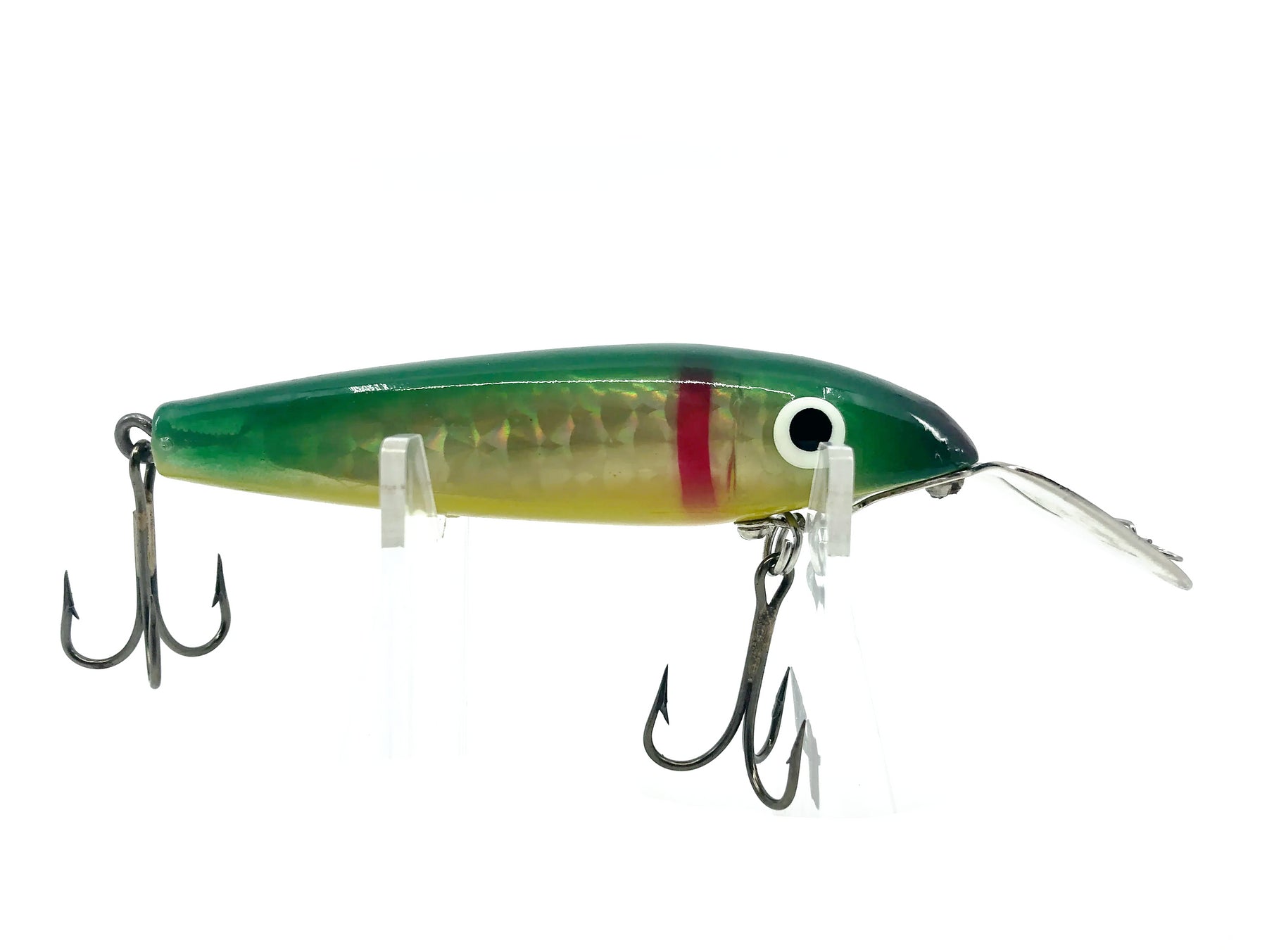 Cisco Kid 200 Series, Green/Gold Color. About 4 1/4" long including lip. Great vintage Cisco Kid lure here. Great for fishing, walleye, bass, pike! Great for collecting. This is a newer vintage Cisco Kid but still hard to find! Lure is used but appears to have never been fished and is in overall great condition. See photos. Fish or collect! A tougher Cisco Kid to find.