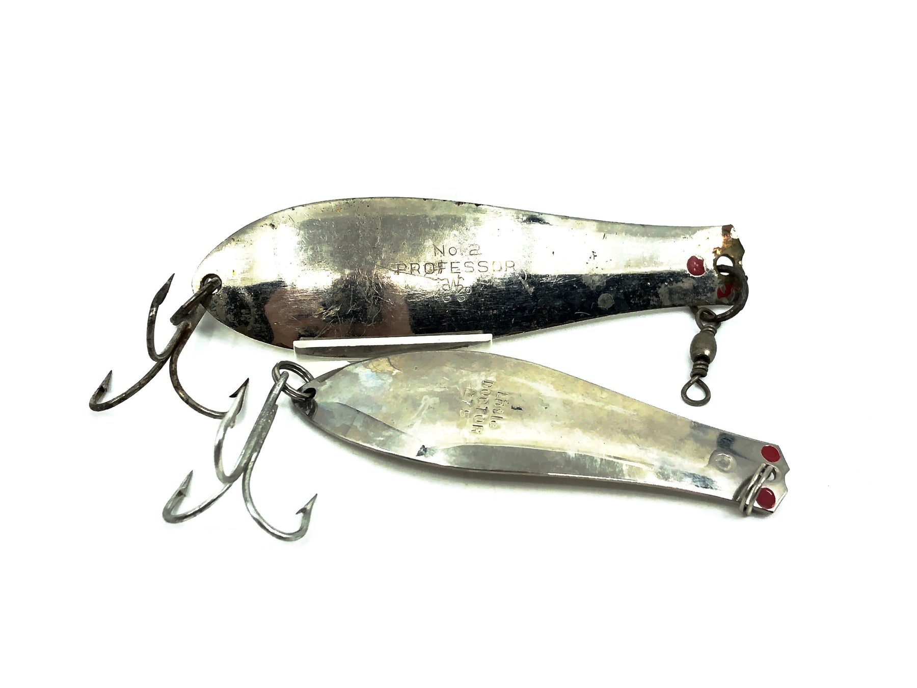 Doctor/Professor Spoon Combo Pack. This pack includes one Little Doctor 275 and one older vintage Weller Professor No.2. Both spoons are the same silver color. These spoons are used and have some wear but still good condition. Still a great way to fish or collect. these lures for cheap!